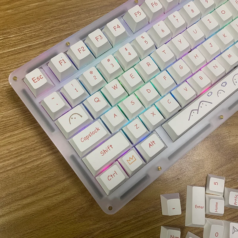 Teclas Graffiti de perfil de cereza de 131 teclas para teclado mecánico para juegos, sublimación de tinte, teclas PBT minimalistas, teclas blancas DIYNota: ¡Esta es solo la tecla y no incluye el teclado!