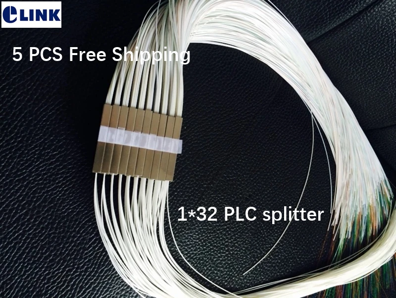 5 PCS 1*32 PLC splitter mini housing without connector 1mtr white cable 1 to 32 fiber optic coupler Steel tube type 0.9mm free shipping factory ELINK