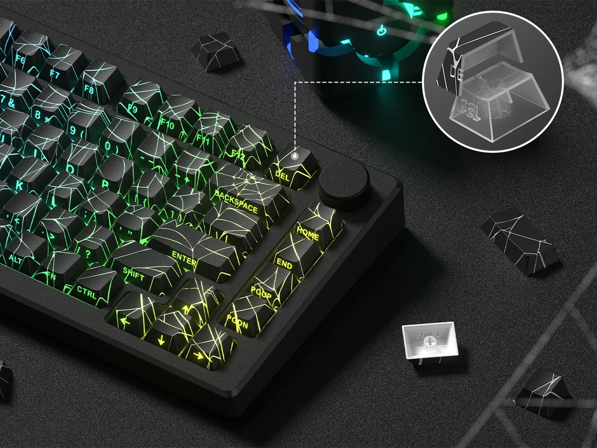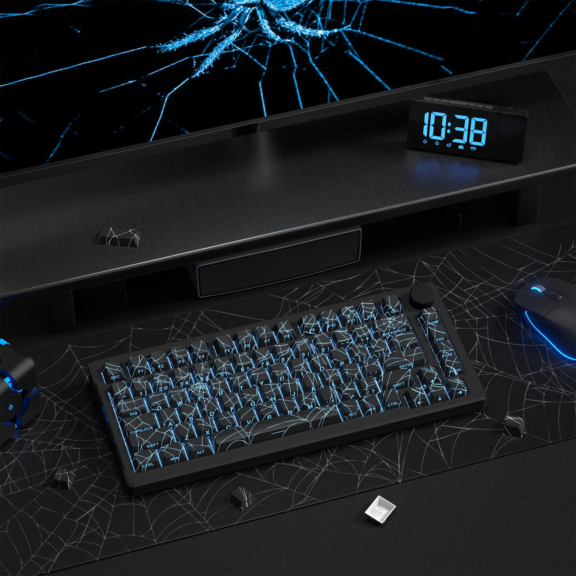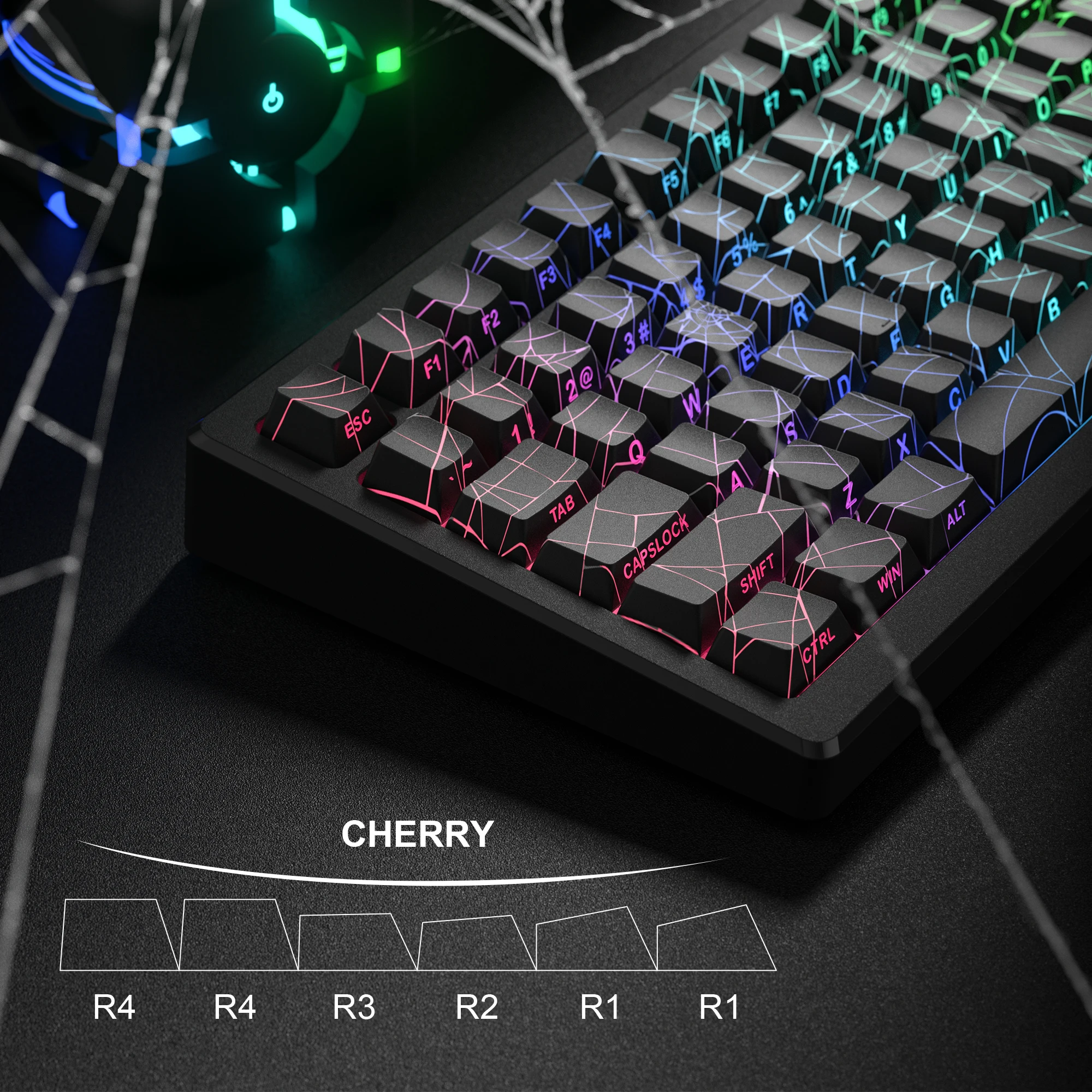 Comprar 134 teclas perfil de cereza tela de araña impresión lateral brillo a través de teclas 5 lados tinte Sub PBT teclas para interruptores MX teclado para juegos