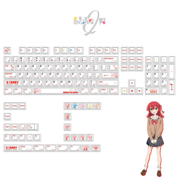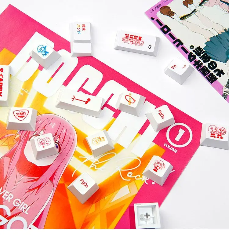 Comprar 136 teclas Lonely Rock Kita Ikuyo tema Keycaps PBT 1,7 mm Keycap Chreey Key Cap PBT sublimación de calor Keycaps diseño ANSI