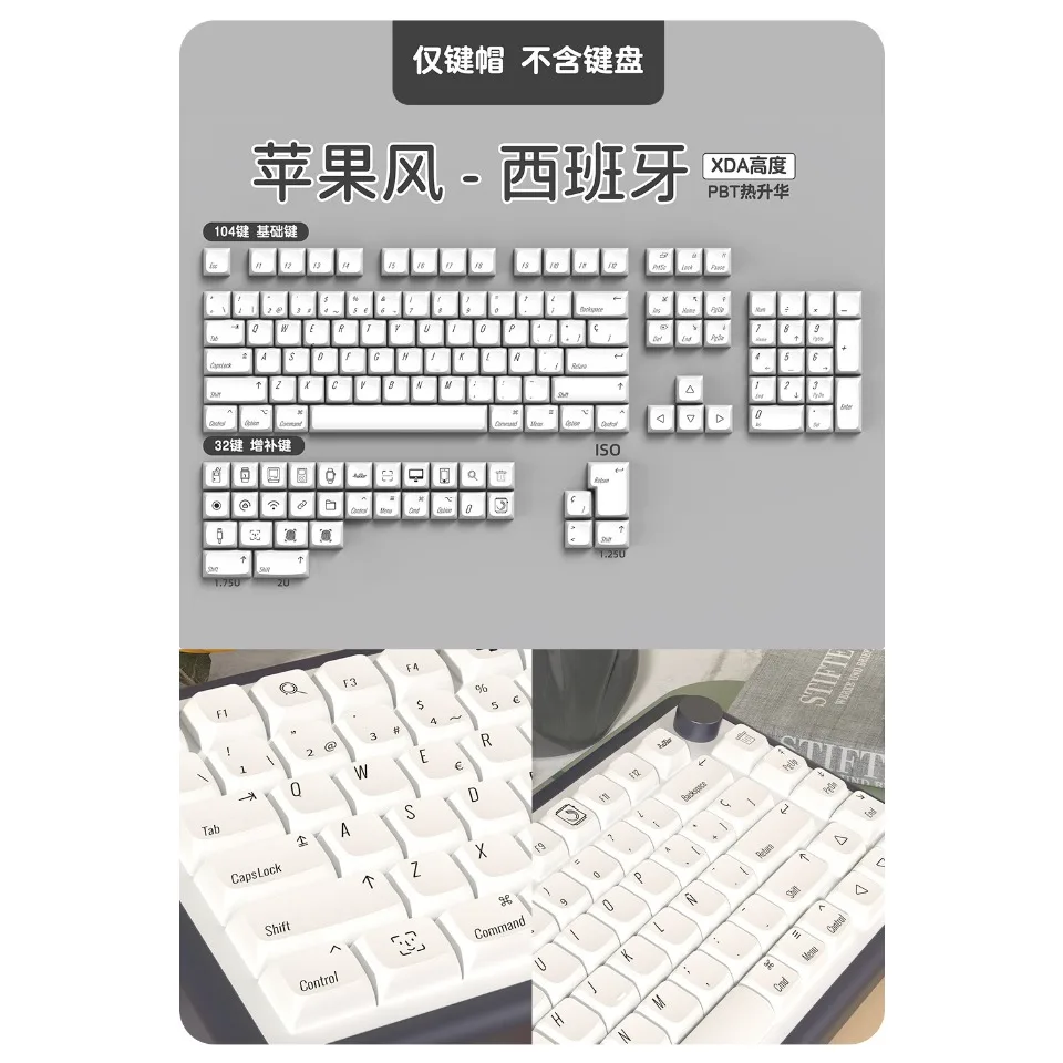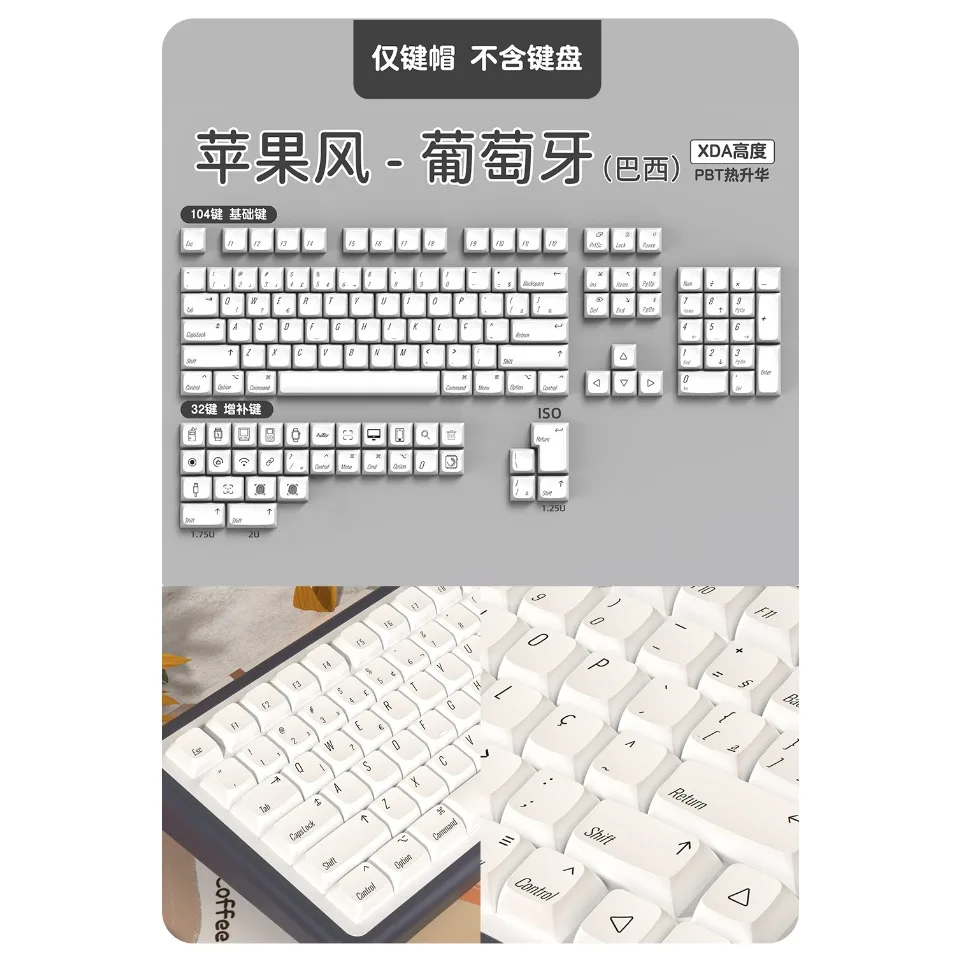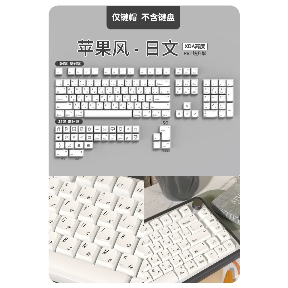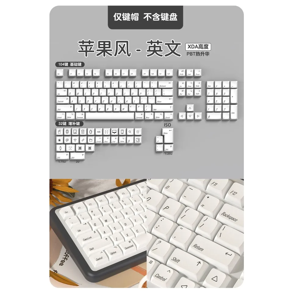 Nombre del producto: Tecla de perfil XDA blanca minimalista de 136 teclas