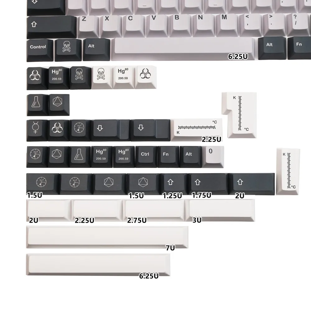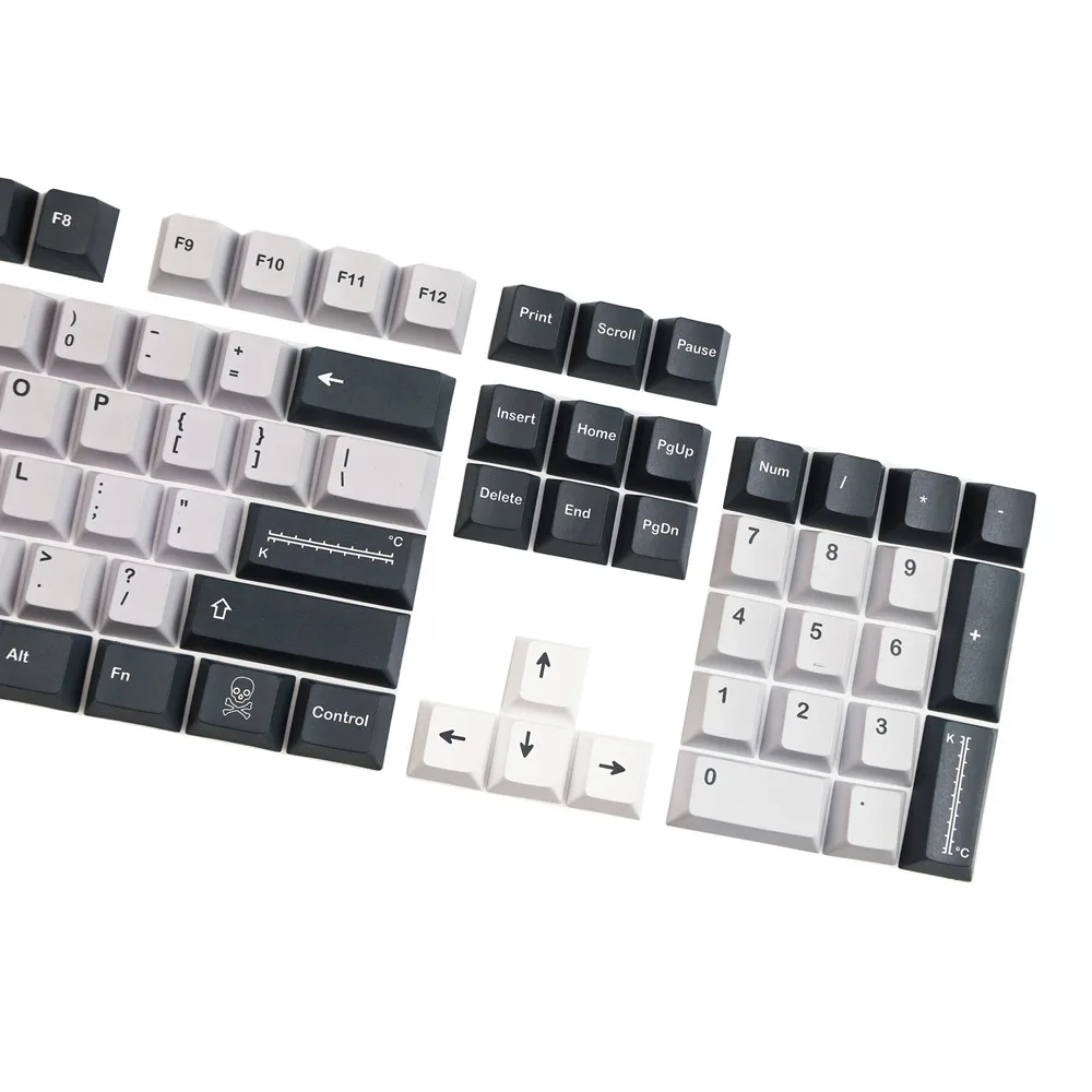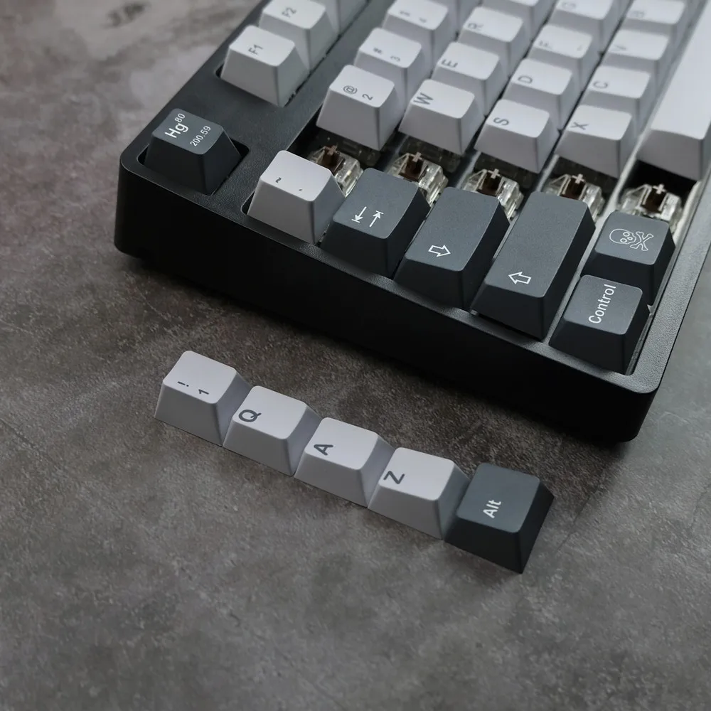 Total de 140 teclas, incluye 1,75U, cambio 2U, alternativa ctrl de 1,5U, entrada ISO y barra espaciadora 7U, es compatible con 61、63 64、65 67 68、80 84、87、96、980、104、108, etc.teclado mecánico de diseño con interruptores MX