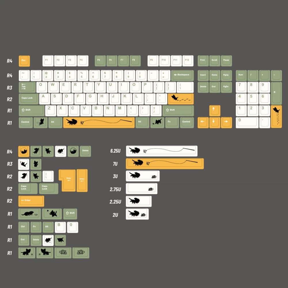 Total de 140 teclas, incluye 1,75U, cambio 2U, 1,5U ctrl alt, entrada ISO, 2U, 2.25U, 2.75U, 3U, 6.25U, barra espaciadora 7U, es compatible con 61、63 64、65 67 68、80 84、87、96、980、104、108, etc.teclado mecánico de diseño con interruptores MX