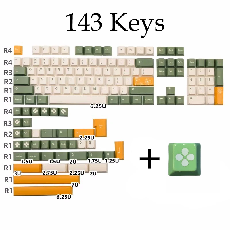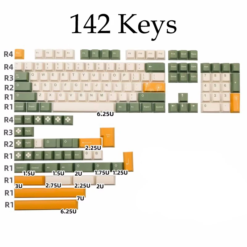 Número de teclas: 142 teclas, incluye 1,25U 1.75U 2U shift, 1.5U alt ctrl, 2U 2.25U 2.75U 3U 6.25U 7U barra espaciadora, entrada ISO