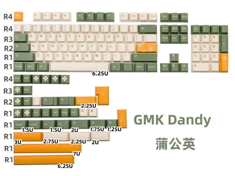 Comprar 142 teclas/juego GMK Dandy Keycap PBT Dye Subbed Keycaps Cherry Profile Key Caps para 61 64 68 84 87 96 980 104 llave de Metal verde