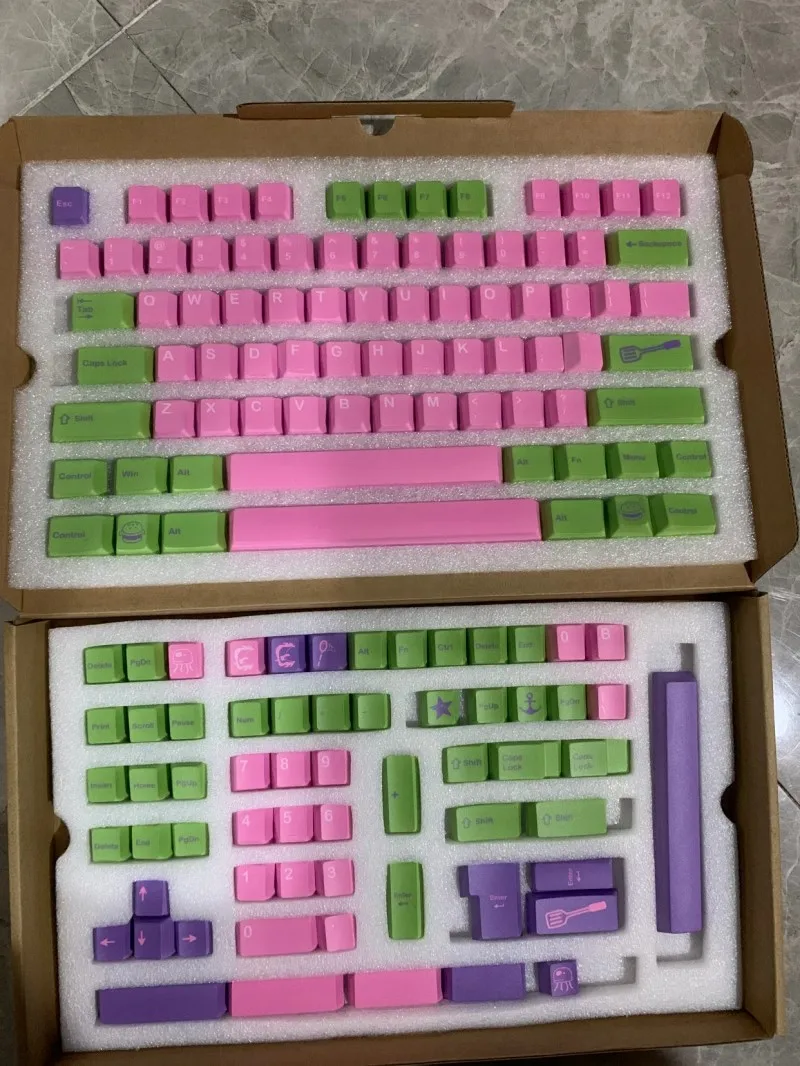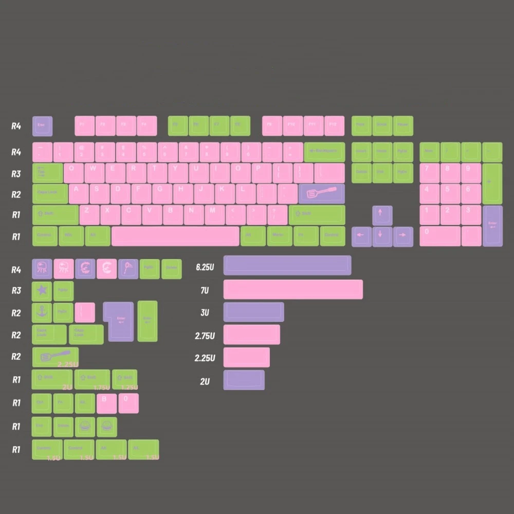 Comprar 142 teclas/juego GMK Star púrpura rosa verde teclas PBT teclas de sublimación de tinte perfil de cereza teclas a prueba de luz para Alice HHKB 96