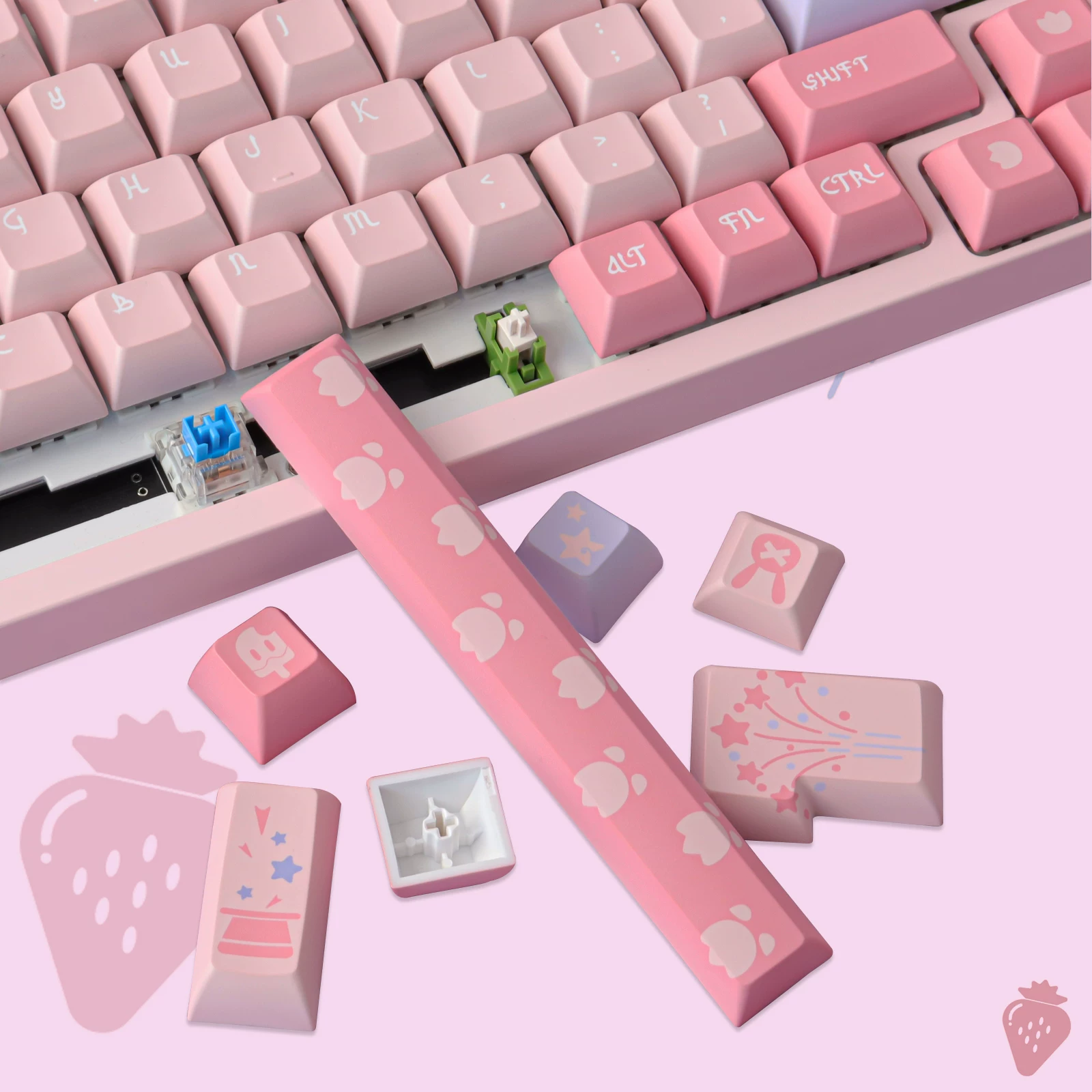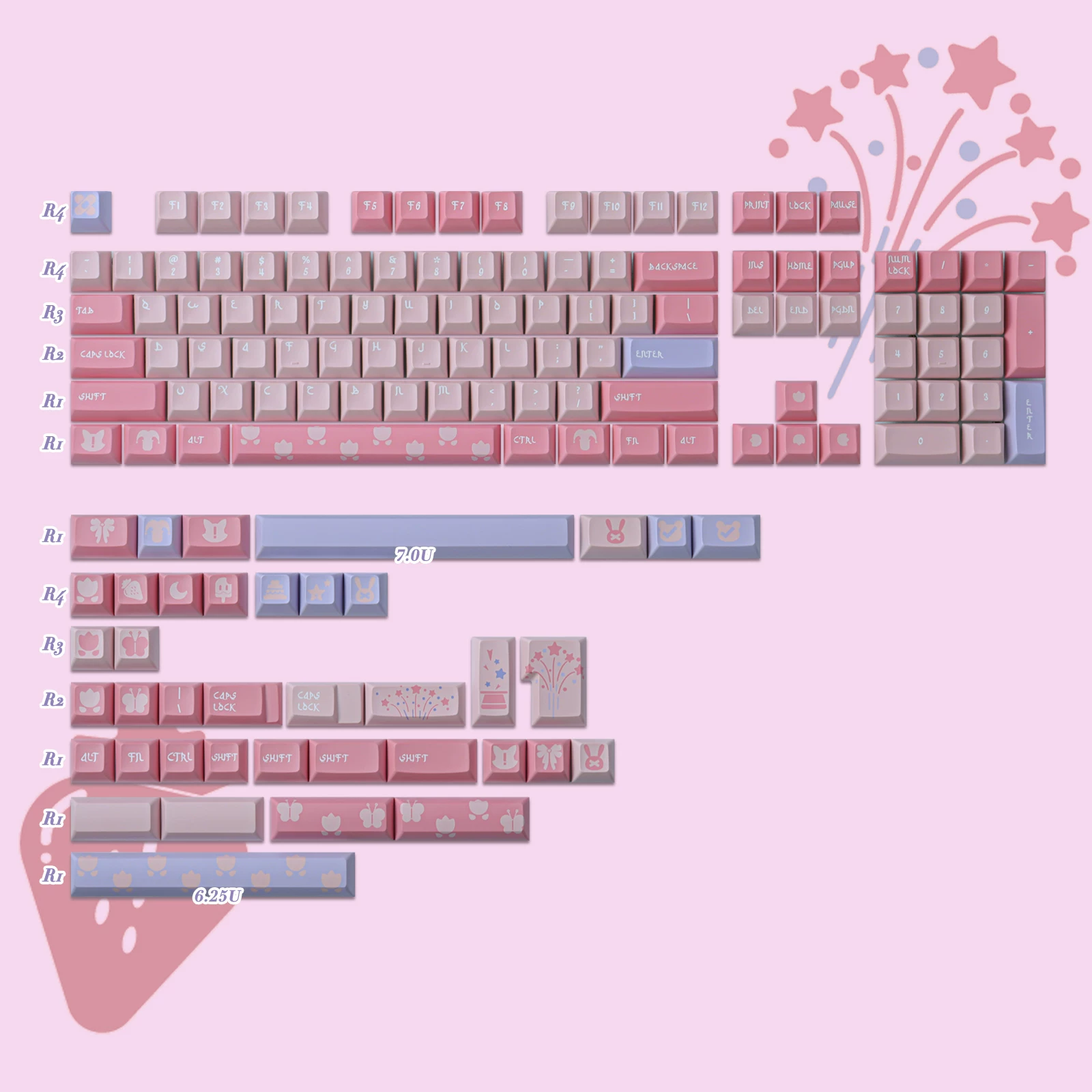 Total de 143 teclas, incluye 1,75U, cambio 2U, 1,5U ctrl alt, entrada ISO, 2U, 2.25U, 2.75U, 3U, 6.25U, barra espaciadora 7U, es compatible con61、63 64、65 67 68、80 84、87、96、980、104、108, etc.teclado mecánico de diseño con interruptores MX