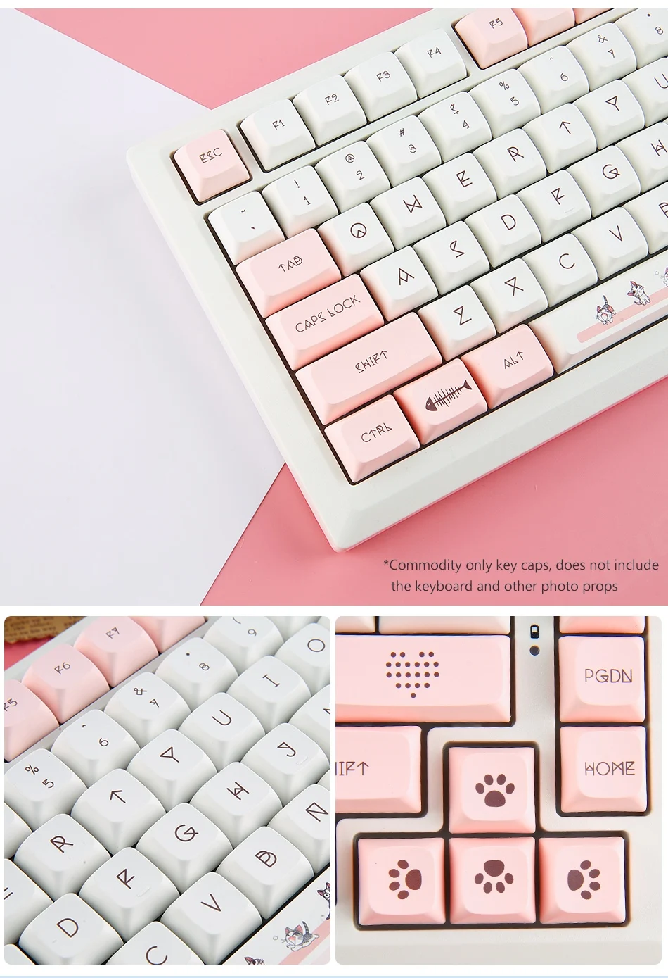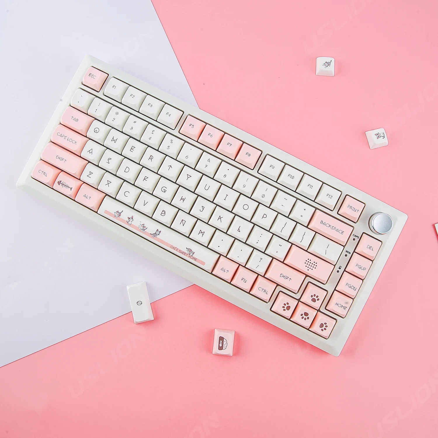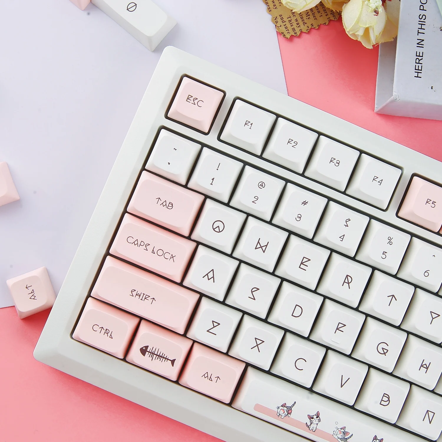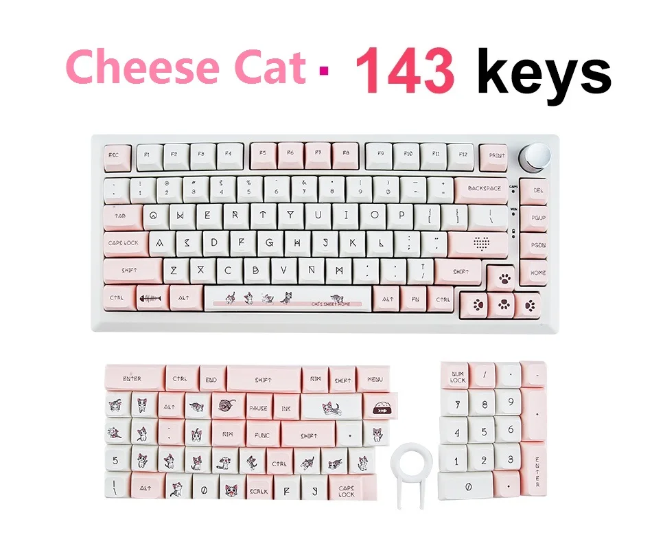 Comprar 143 teclas queso gato lindo teclas XDA perfil PBT Keycap para Mx Switch Teclado mecánico sublimación de tinte tapas de teclas rosas GK61