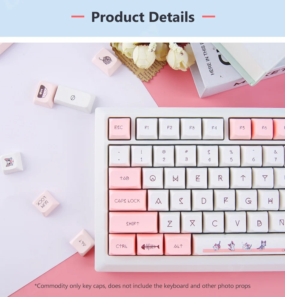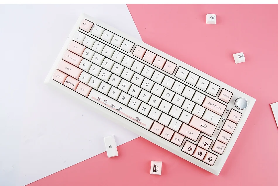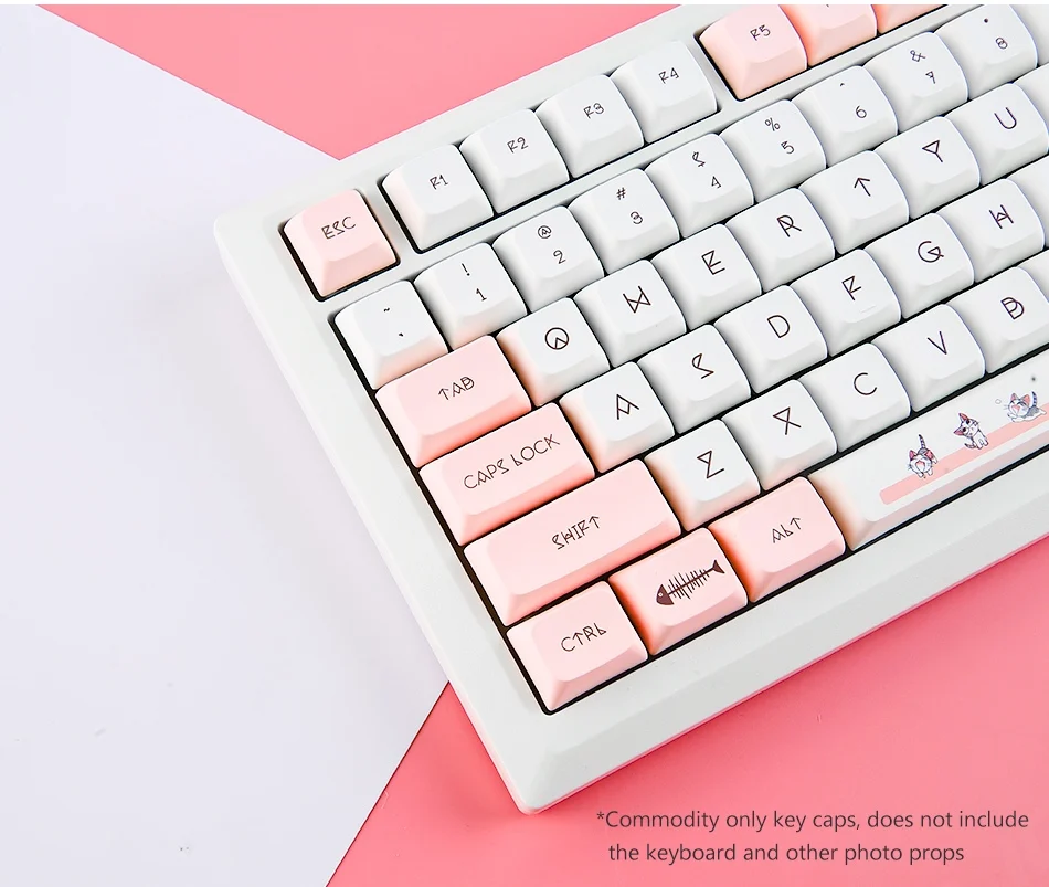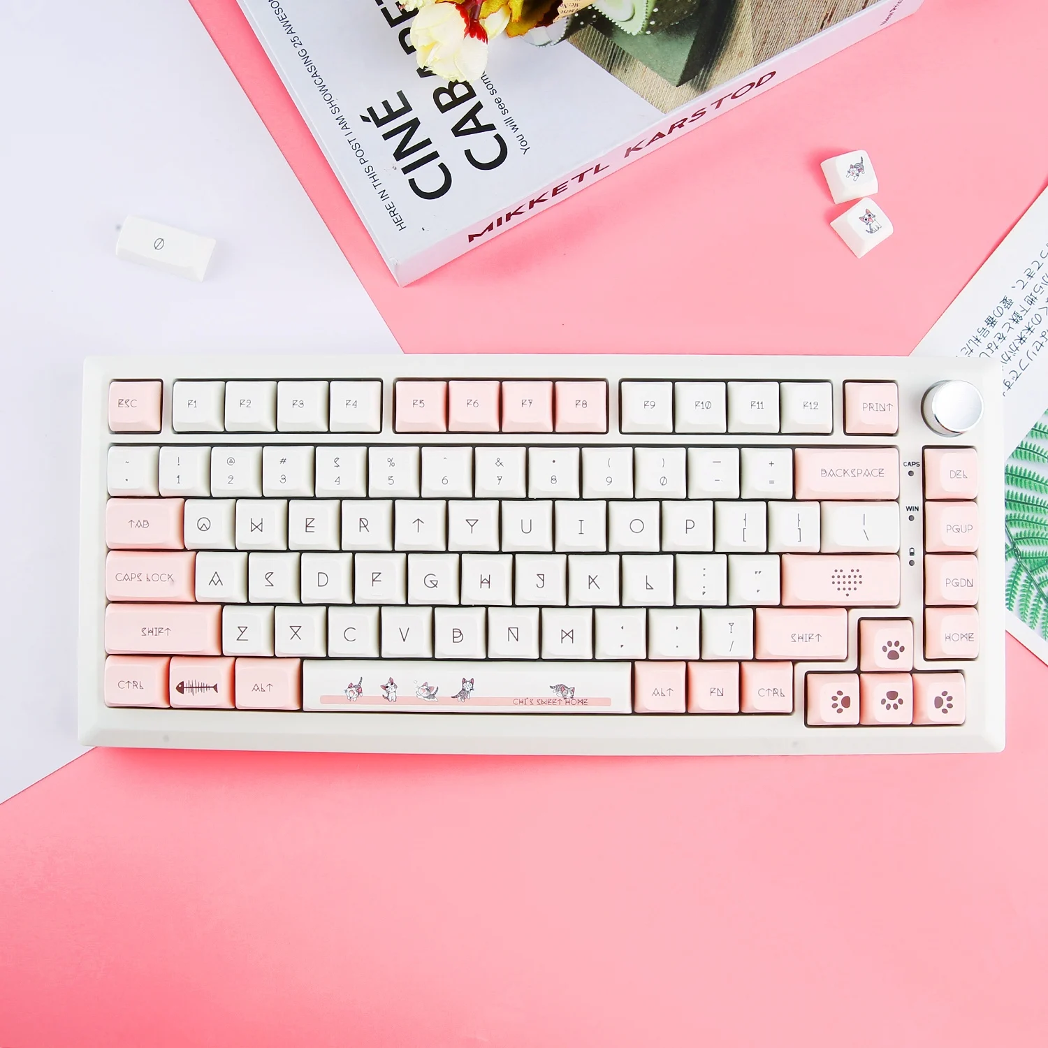 Comprar 143 teclas queso gato lindo teclas XDA perfil PBT Keycap para Mx Switch Teclado mecánico sublimación de tinte tapas de teclas rosas GK61