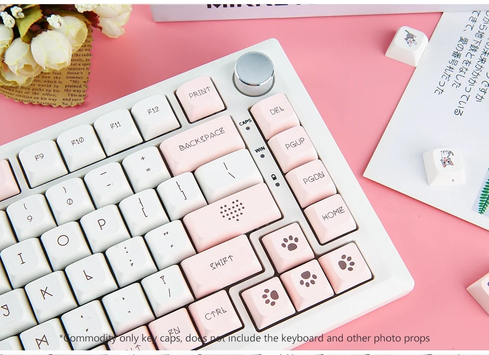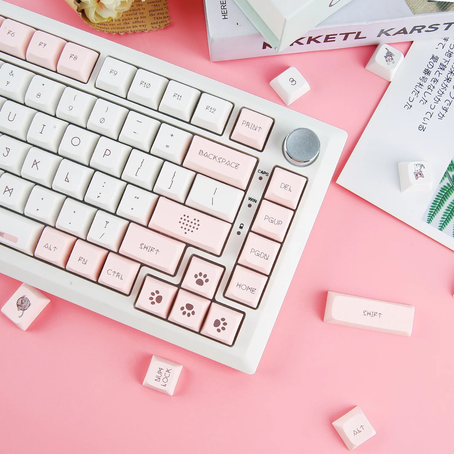 Teclas de perfil XDA de 143 teclas PBT DYE-SUB, lindas patas de gato, teclas rosas para interruptor Cherry Mx GMK67 GK61, teclas de teclado mecánico para juegos
