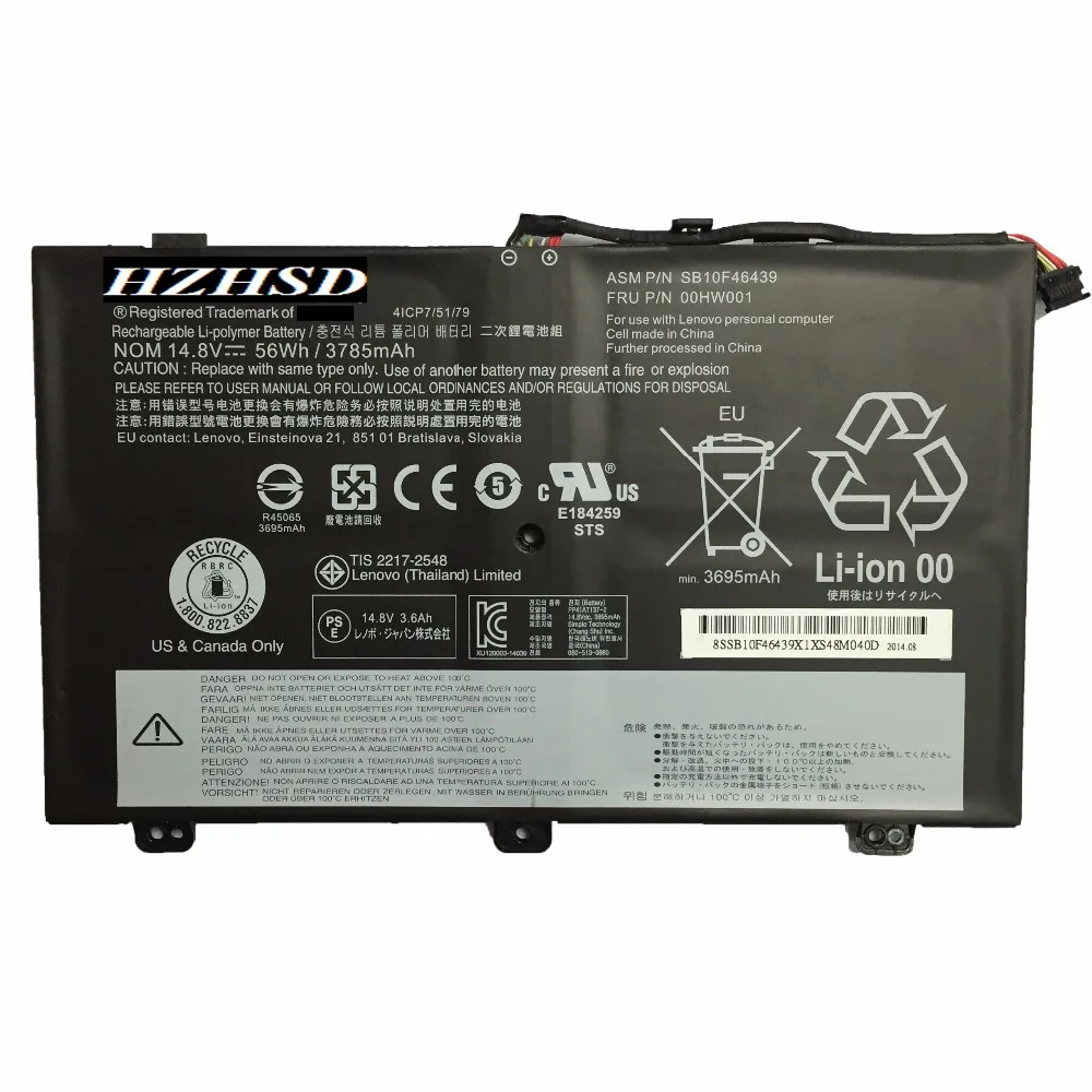 Comprar 14,8 V 56wh nuevo Original 00HW001 SB10F46439 00HW000 batería de ordenador portátil para LENOVO Thinkpad S3 Yoga 14 SB10F46438 14,0 4ICP7/51/79