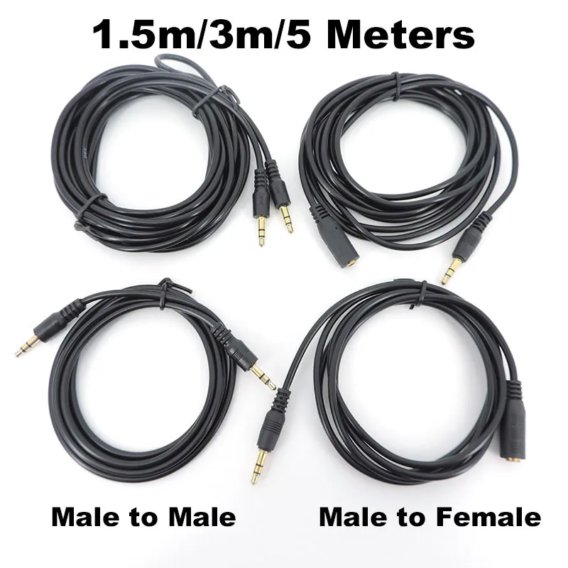 1.5/3/5 m macho a hembra 3,5 mm conector macho a macho Cable de extensión auxiliar estéreo Audio para teléfono auriculares