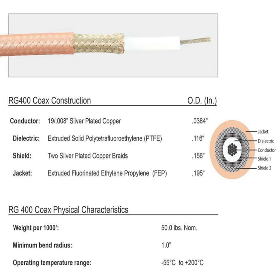 Comprar 15/30/50/100cm 1M 2M RG400 N macho ángulo recto a N hembra puente de doble escudo 50ohm Cable coaxial coaxial 50ohm