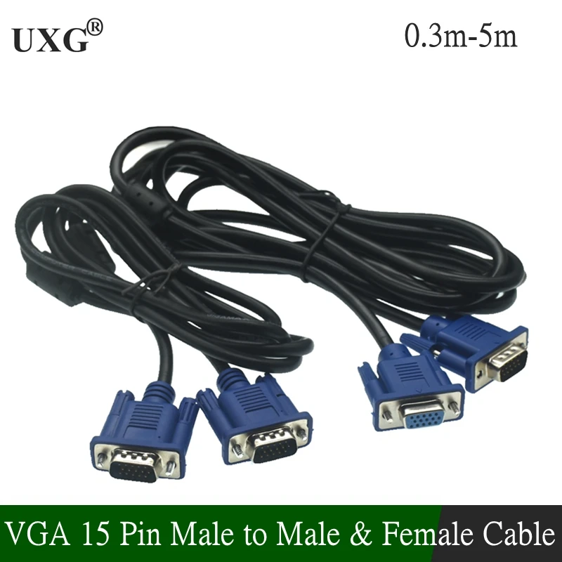 Comprar 1,5/3M Negro Azul VGA de 15 Pin enchufe macho a macho Monitor de la computadora de Cable de alambre de Cable de Cables de conexión de computadora