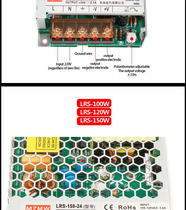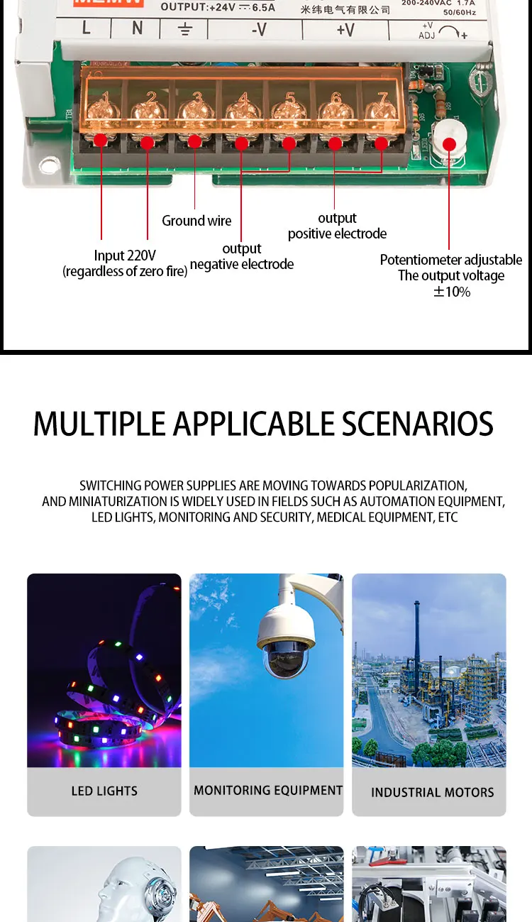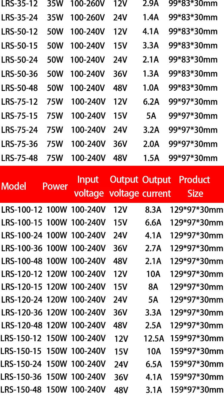 150W 12V 12.5A 24V 6.3A 110V/220V AC DC Industrial SMPS CCTV Led controlador transformador fuente de alimentación conmutada LRS-150-12 LRS-150-24