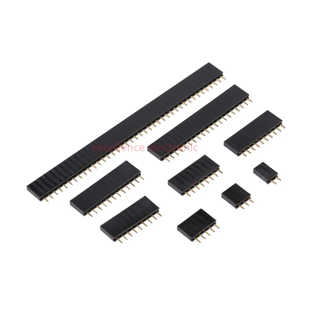 Comprar 155 unids/caja 2,54mm conector de cabezal hembra de una sola fila 2/3/4/5/6/7/8/9/10/12/20/40pin Kit de combinación de placa PCB