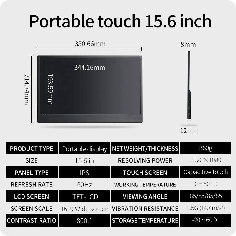 Comprar 15.6 Inch Type-C Portable Touchscreen Monitor Mini HDMI Computer Display HDR IPS Screen With Speaker For Gaming Cellphone PC