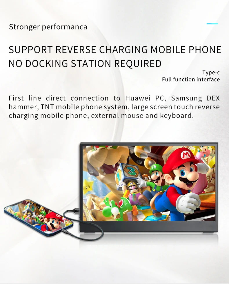 6. Se puede utilizar como un segundo monitor para PC/portátil/escritorio/Mac/Smartphone, etc., trabajando simultáneamente.
