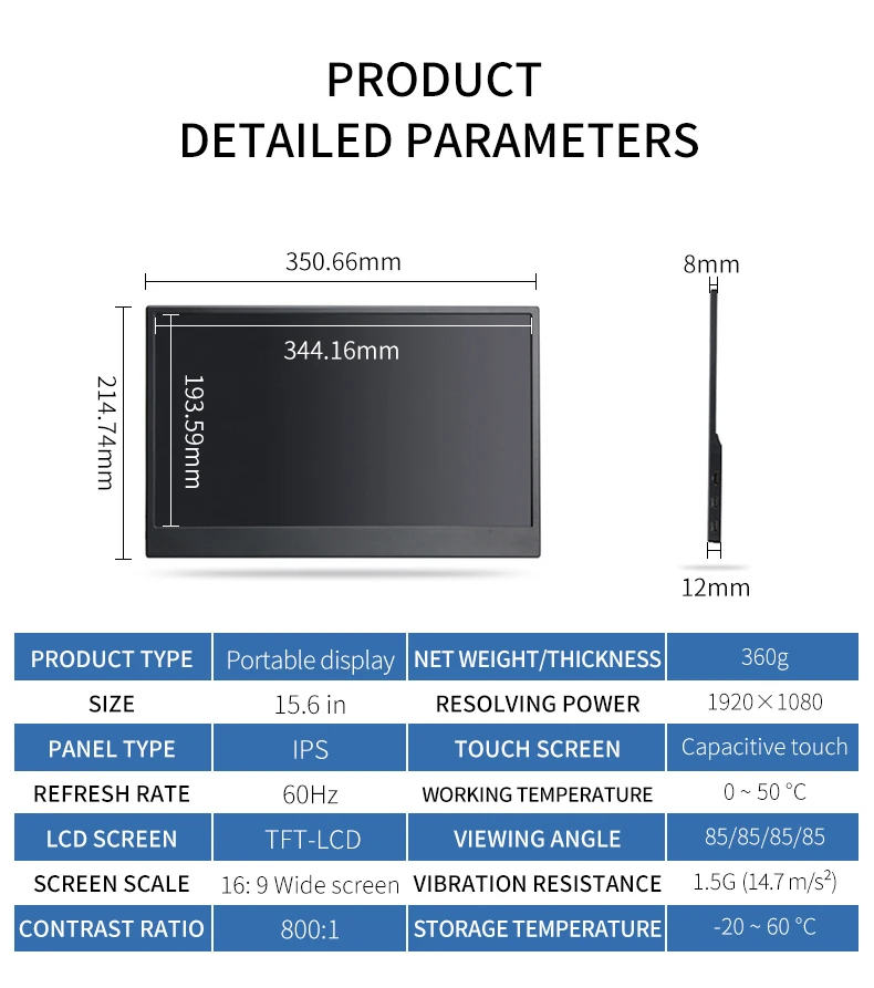 5. Monitor ultrafino de 10mm. Pantalla grande y peso más ligero son convenientes para la oficina de negocios móvil, viajes y juegos.