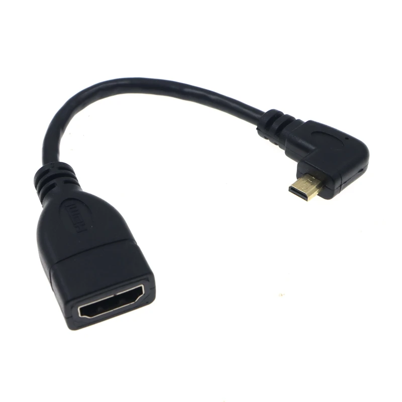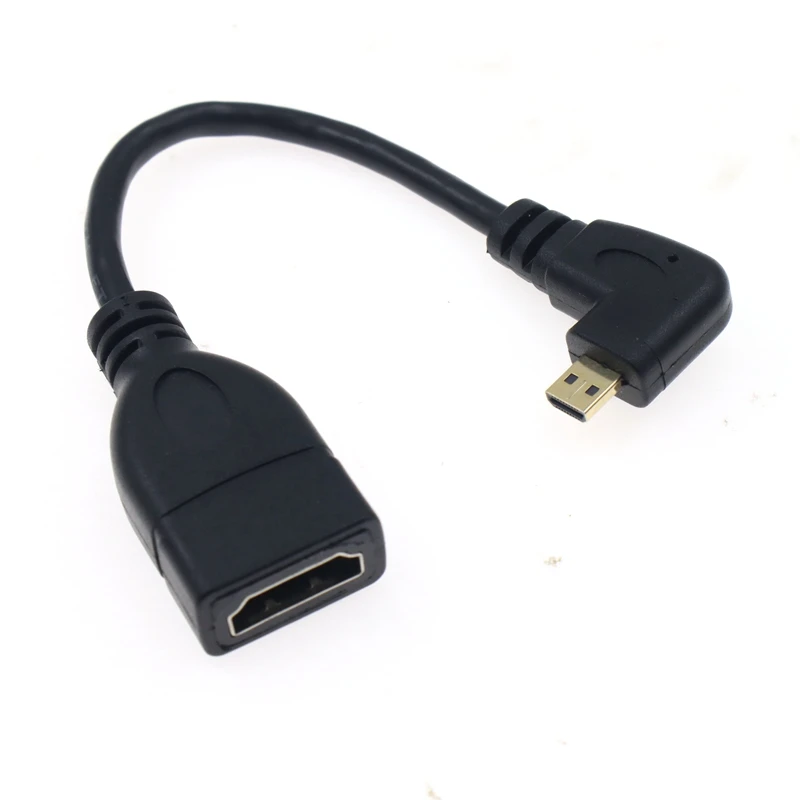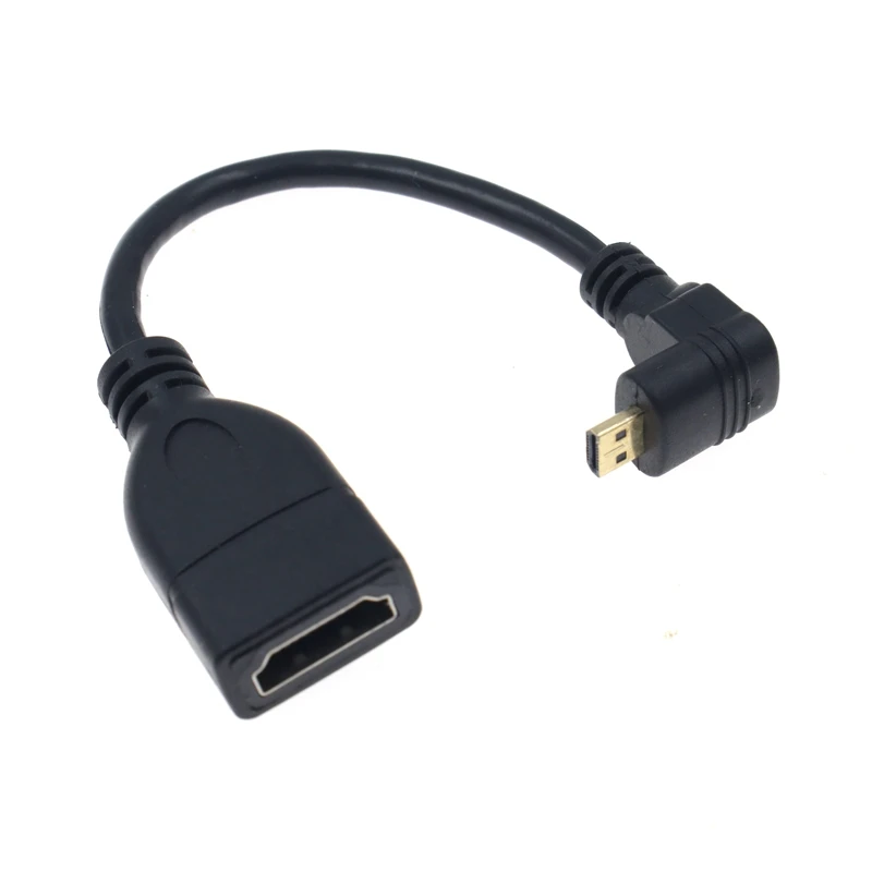 1) Micro HDMI macho en ángulo recto de 90 grados (tipo D) a HDMI hembra (tipo A).