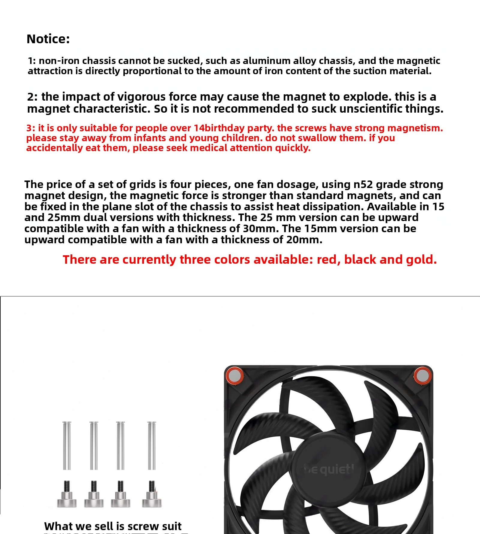 15MM 25 ventilador de refrigeración magnético tuerca magnética chasis de fijación caja de PC ventilador tornillo de embellecimiento modificación DIY para disipación de calor
