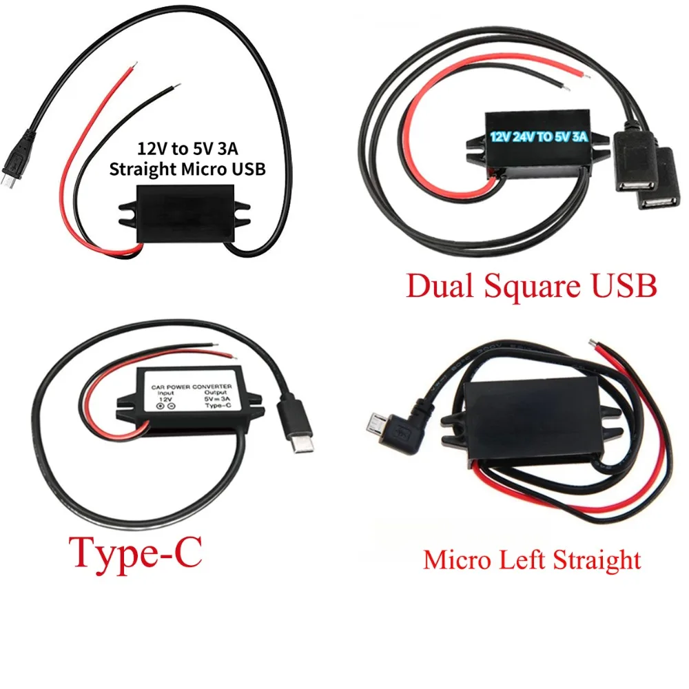 15W 12V 24V a 5V 3A DC-DC reductor Buck convertidor regulador módulo de fuente de alimentación Mini USB Micro USB macho hembra adaptador tipo C