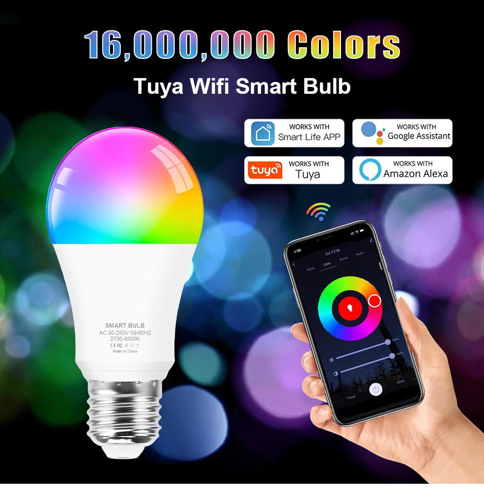 Tipo: Bombilla LED inteligente Tuya WiFiMaterial: aluminio de aviación, plásticoTipo de enchufe: E26/E27Potencia: 15W/18WVida: 50000hDescarga de la aplicación: vida inteligenteRed: Wi-Fi de 2,4 GHzColor de luz: RGB + Blanco cálido + Blanco (2700K-6500K)Función: Control por voz, Control de aplicación remota, Regulable, Compatible con Amazon Alexa Echo Google Home Assistant.¿Cómo conectarse con la aplicación Smart Life?1.Descargue la aplicación Smart Life, registre una cuenta e inicie sesión2.Haga clic en "+" en la esquina superior derecha - Agregar manualmente - Iluminación -Iluminación (Wi-Fi)3.Encienda el interruptor 3 veces: encendido-apagado-encendido hasta que parpadee rápidamente4.Haga clic en "confirmar que la luz parpadea rápidamente" y luego ingrese la contraseña WiFi correcta (WiFi de 2,4 Ghz)5.En 30 segundos, se conectará