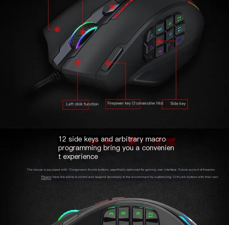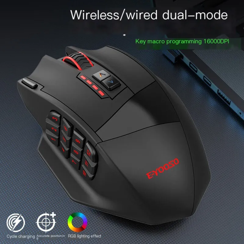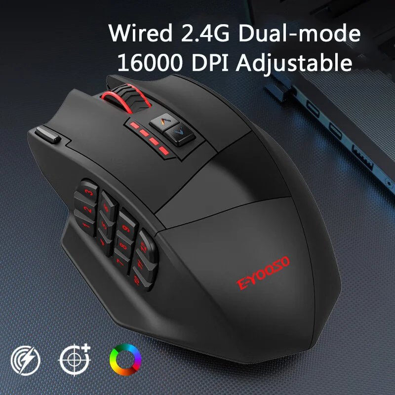 Comprar 16000 DPI ajustable 12 botones configuración con cable 2,4G ratón de modo Dual retroiluminación RGB Gamer para ordenador portátil Esports Gaming