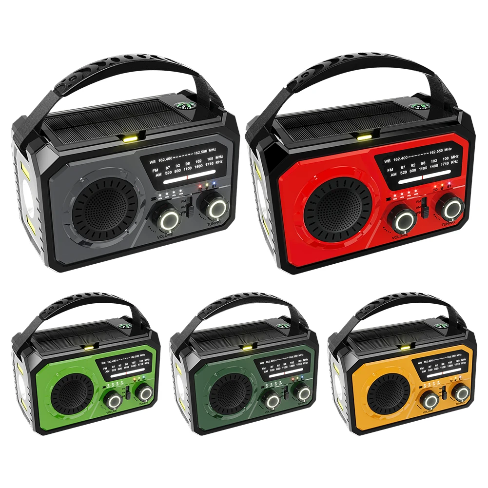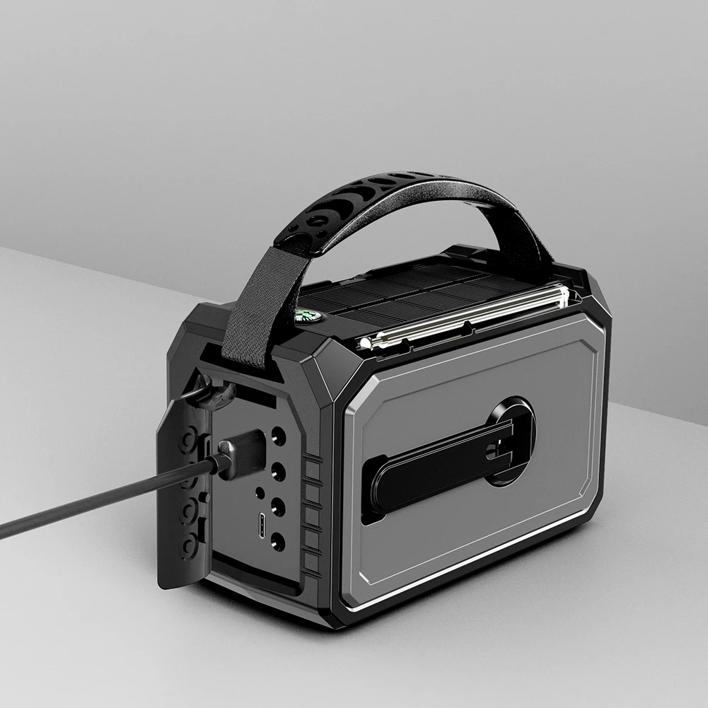 4.Características multifuncionales:Esta Radio Multifuncional ofrece múltiples opciones de carga (manivela, solar, USB3A), un