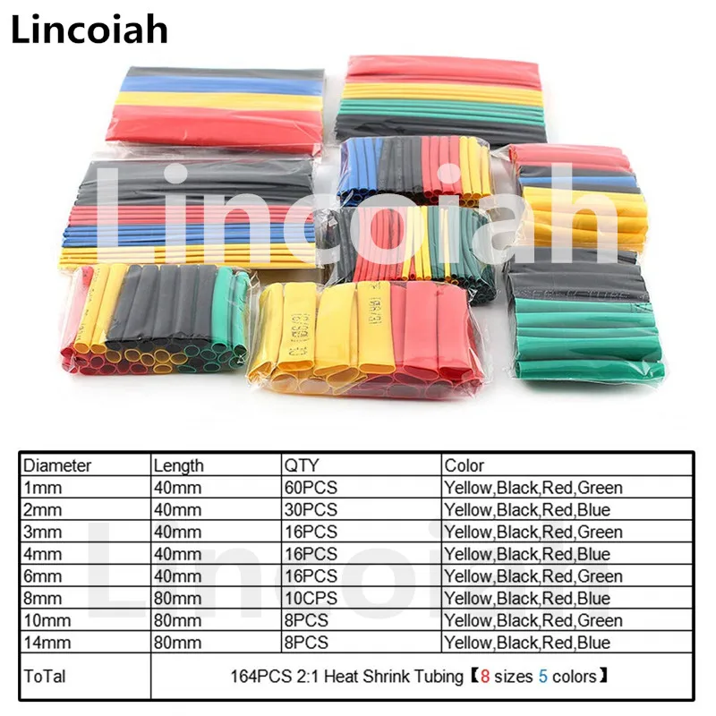 Comprar 164 unids/set kit de tubos termorretráctiles manguito de aislamiento termoretractil poliolefina encogimiento surtido Cable de Tubo termorretráctil