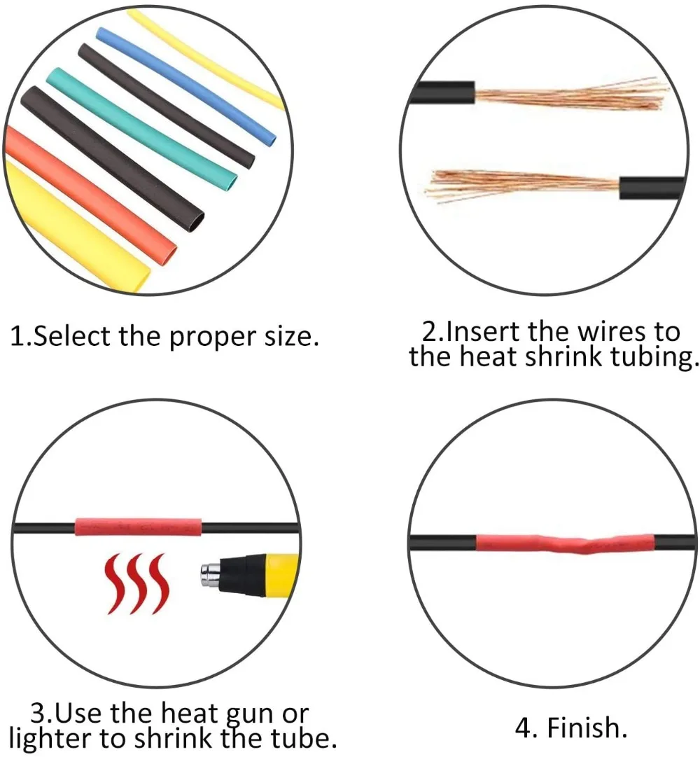 Juego de cables envolventes de tubos termorretráctiles de poliolefina, 144 Uds., multicolor/negro