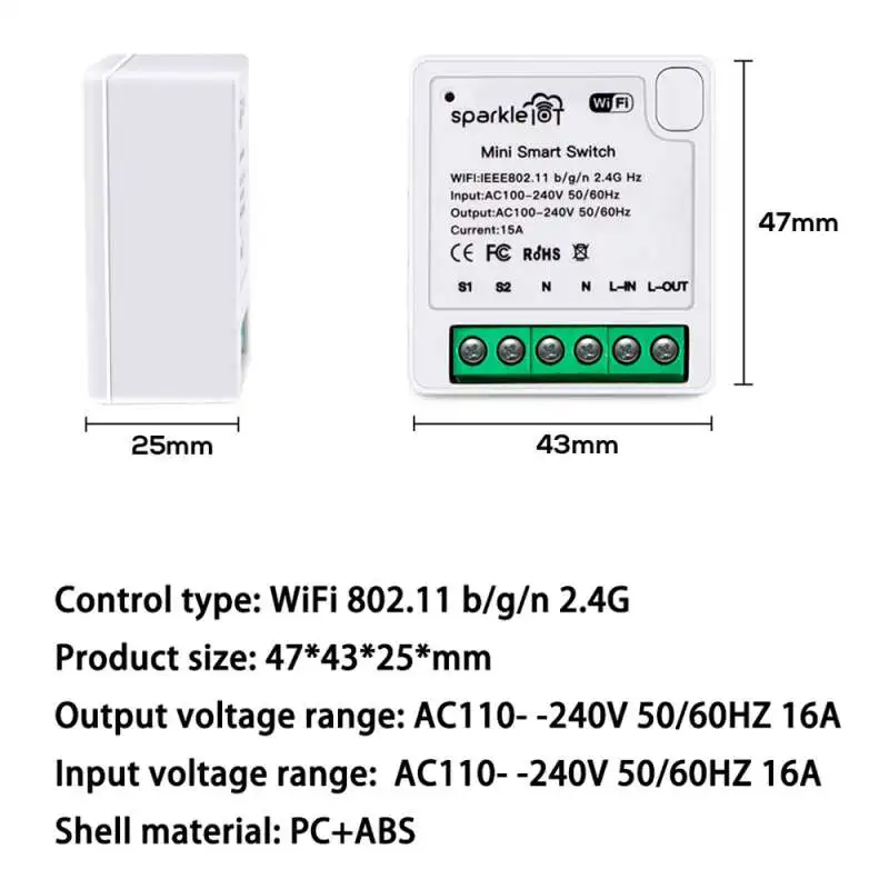 16A Tuya Mini interruptor inteligente WiFi DIY con función de sincronización Módulo de interruptor de luz inteligente Compatible con Alexa Google Home