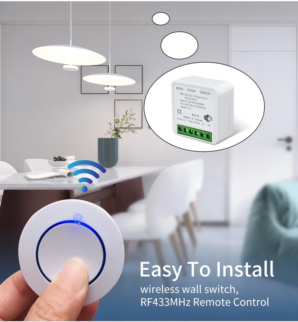 El controlador de relé es Wifi+RF, el botón redondo del control remoto es solo RF. El control remoto de botón redondo en sí no puede controlar el encendido de las luces apagadas. Necesita funcionar juntos con el receptor WiFi+RF.