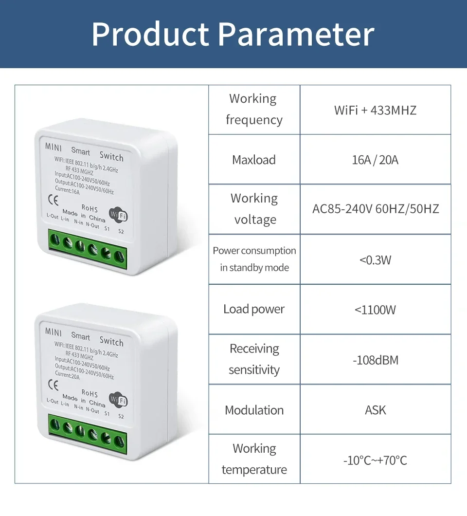 5.Control remoto de la aplicación Tuya o Smart Life: controle remotamente las iluminaciones o los electrodomésticos de su casa a través de la aplicación Smart Life desde cualquier lugar y en cualquier momento.
