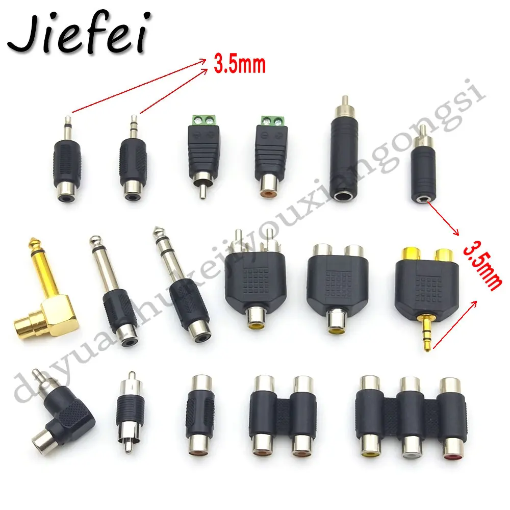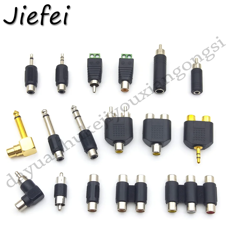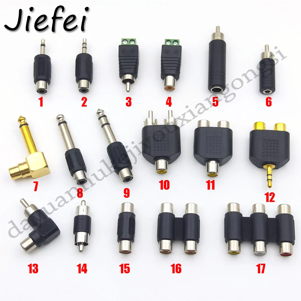 Comprar 17 tipos de adaptadores RCA, Conector de enchufe de Audio RCA macho hembra a RCA 3,5mm 6,35mm, Conector mono estéreo macho hembra
