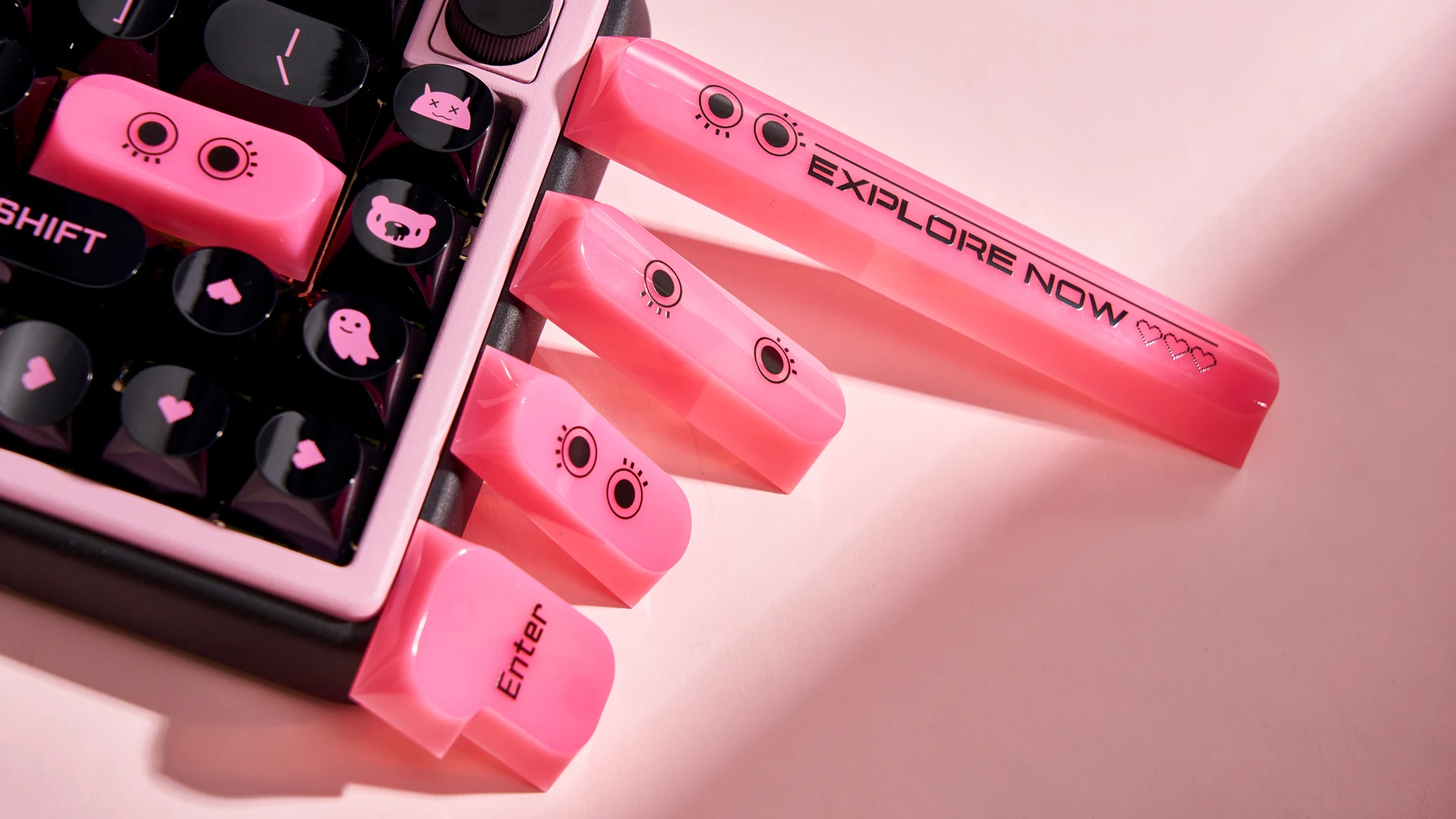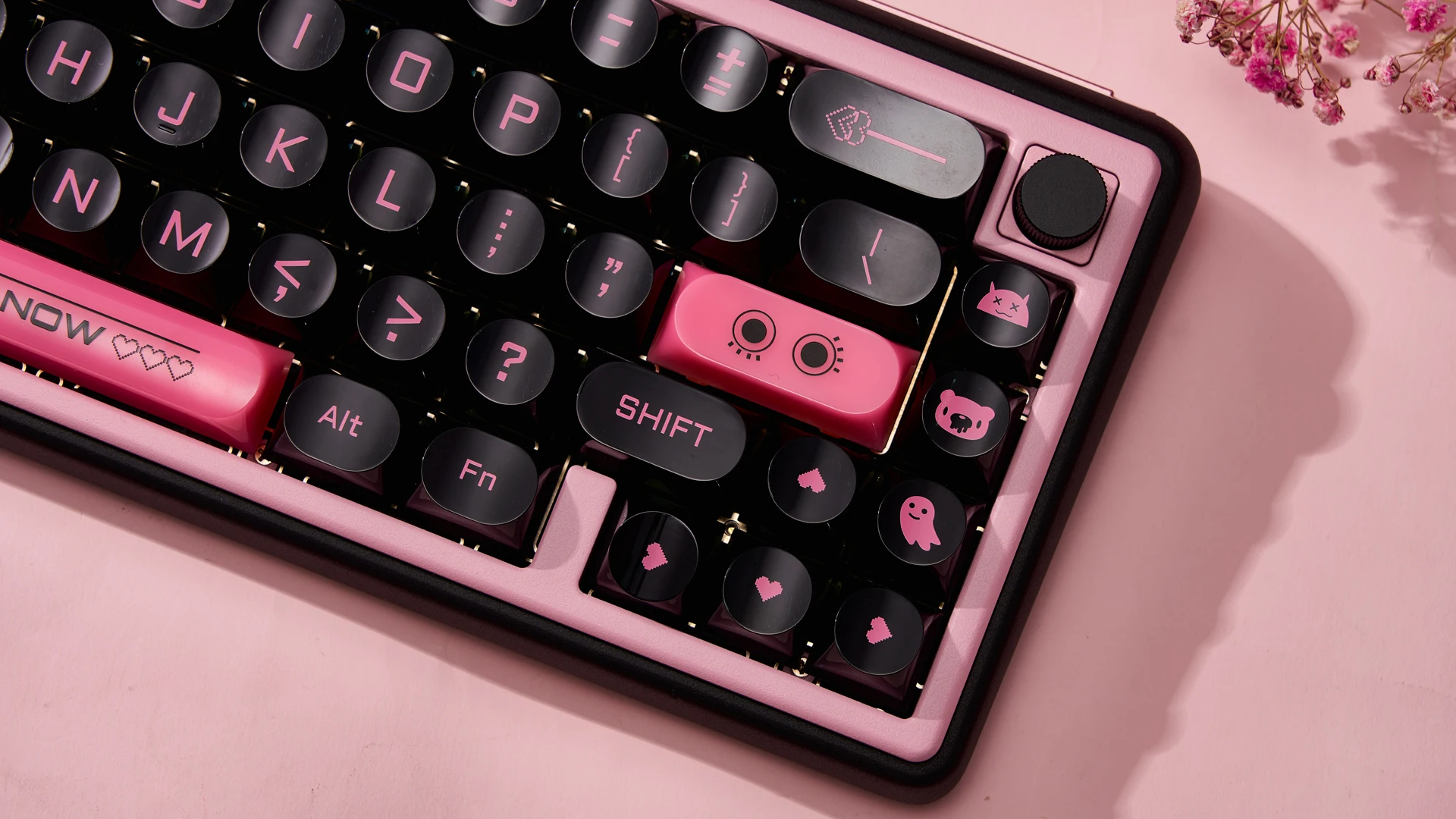 Teclas de color negro y rosa