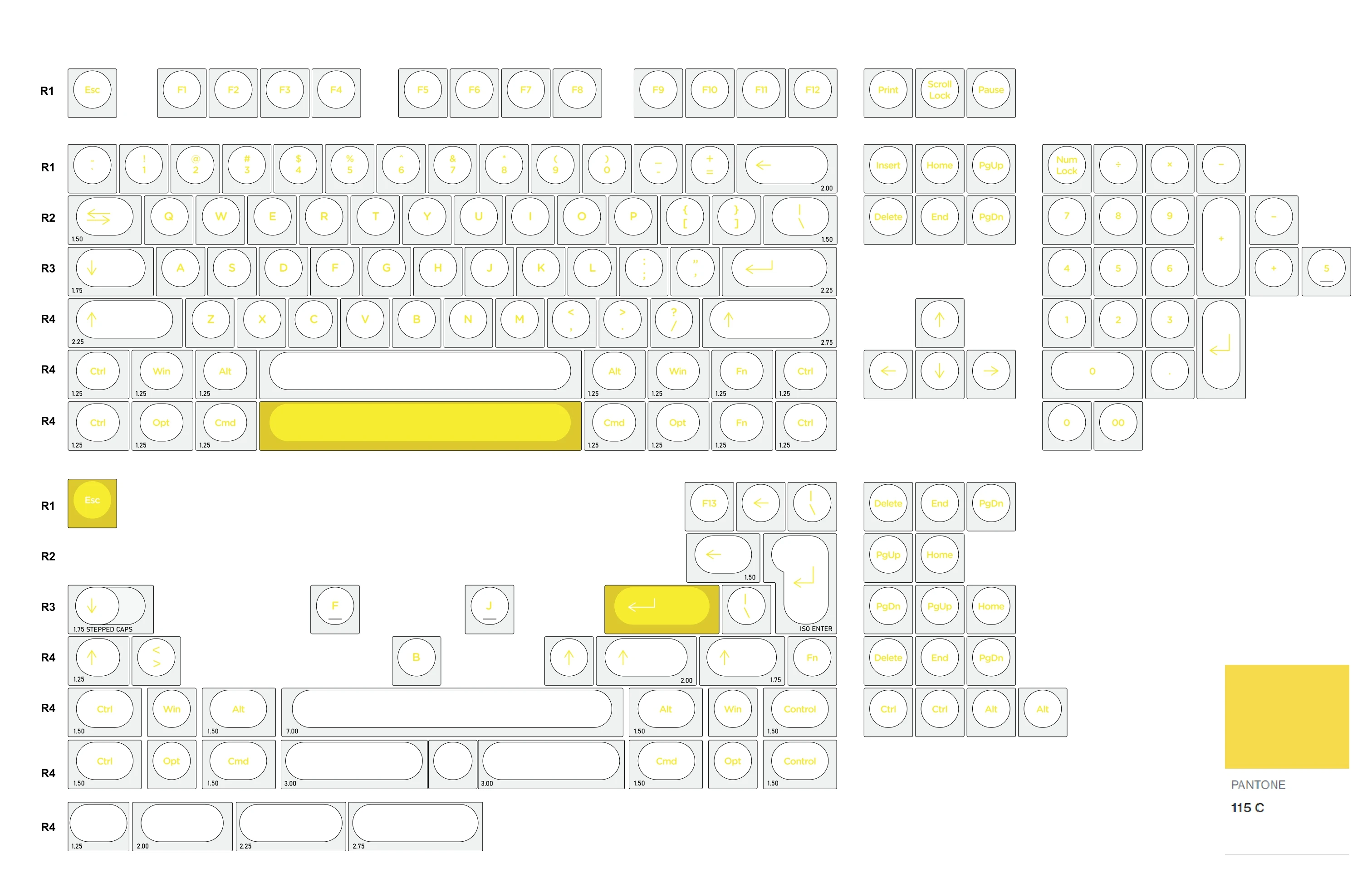 Las 170 teclas están disponibles en diseño de 60%, 65%, 75%, 87% y tamaño completo, etc.