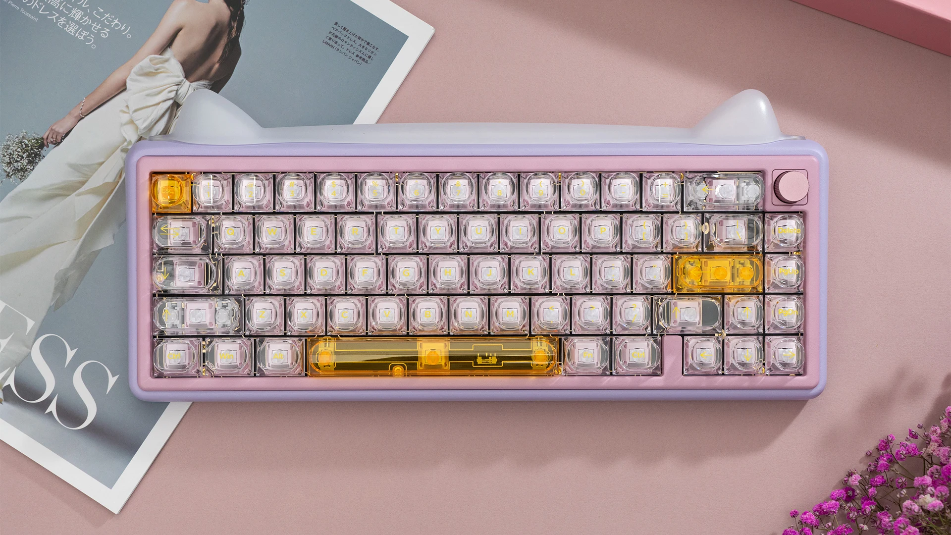 Amarillo esmaltado:Estas teclas transparentes hechas de PC tienen una apariencia cristalina con alta translucidez y resistencia, lo que mejora el valor general del teclado y se ven aún más geniales, especialmente bajo efectos de iluminación RGB.