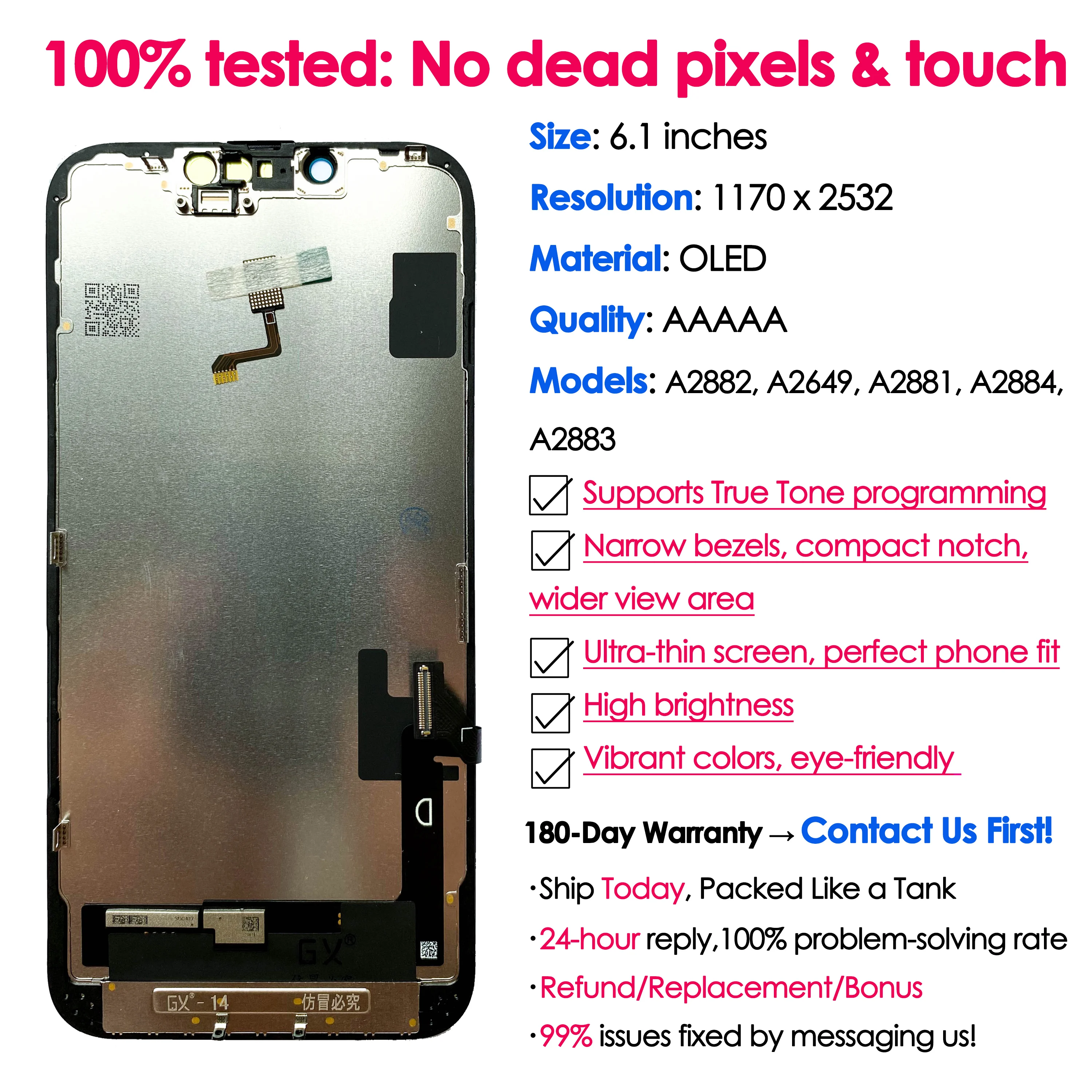 Comprar 180 días de garantía GX OLED para iPhone 14 pantalla de repuesto montaje de digitalizador táctil Kit de reparación LCD venta al por mayor tono verdadero