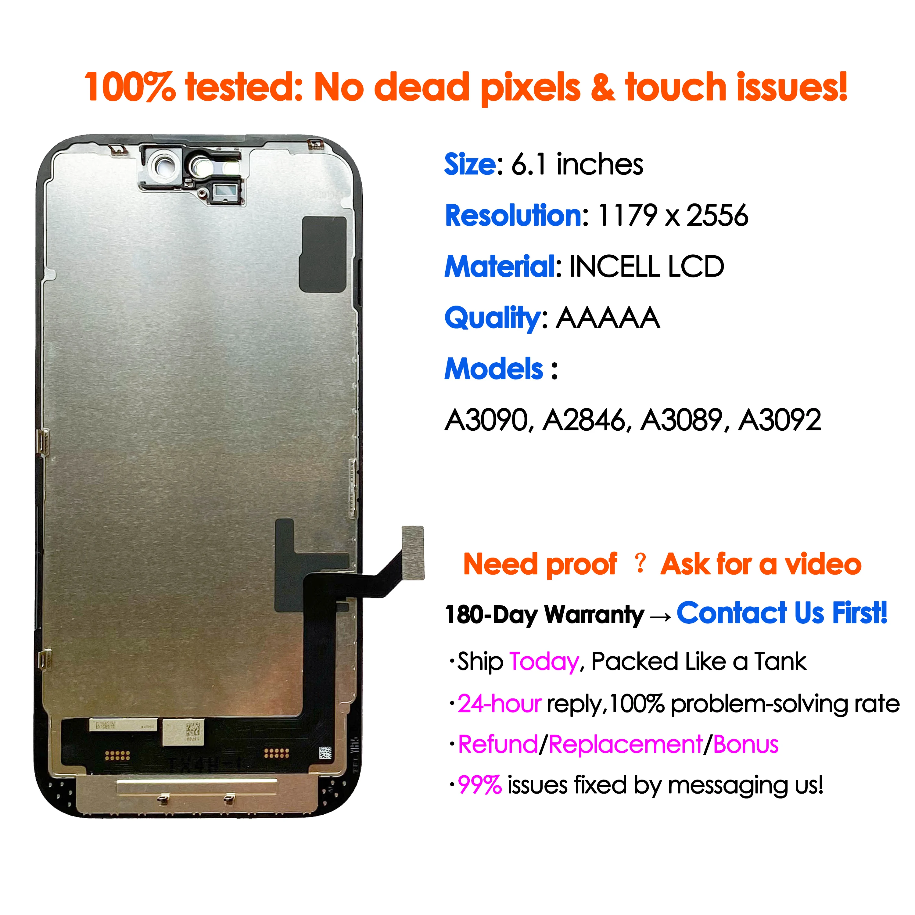 Comprar 180 días de garantía incell LCD para iPhone 15 pantalla táctil reemplazo teléfono móvil digitalizador montaje Kit de reparación al por mayor