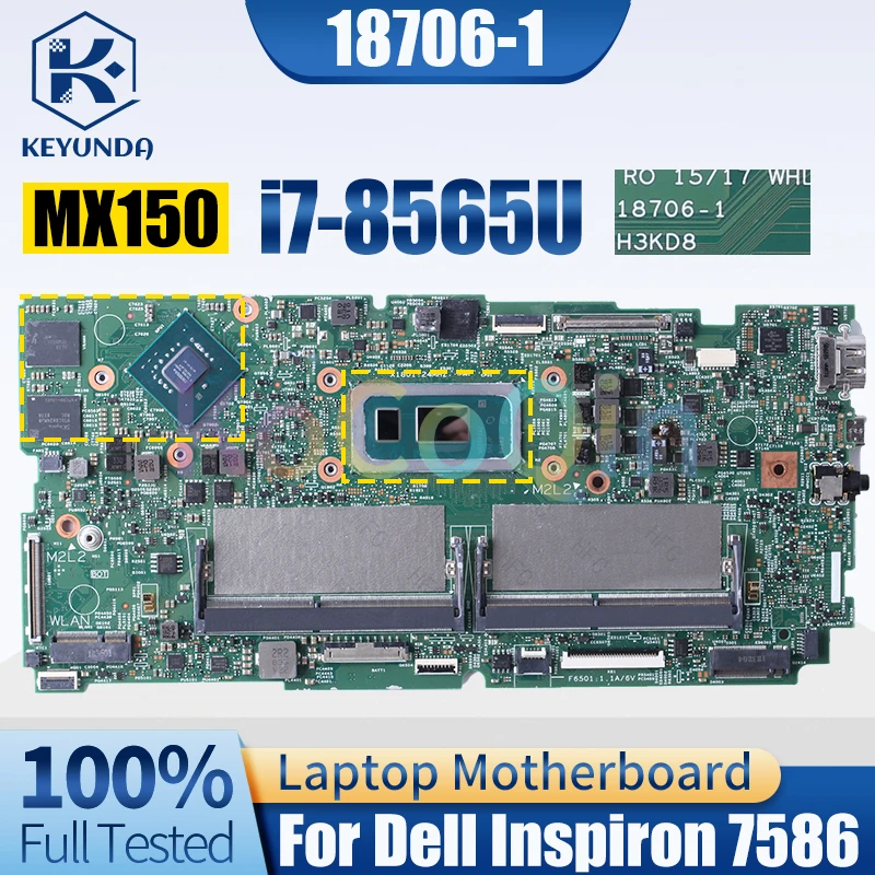 Comprar 18706-1 para la placa base del cuaderno Dell Inspiron 7586 i7-8565U MX150 2G CN-0C6KN0 0C6KN0 N17S-G1-A1 placa base del ordenador portátil completamente probada