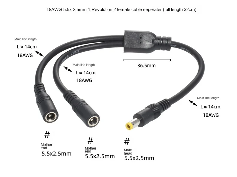 Especificación del cable: 18AWG/0,75mm ²/od4.8 mm, el cable principal y el cable de rama tienen el mismo diámetro