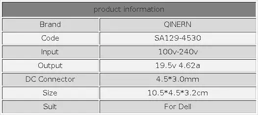 Voltaje/corriente de salida CC: 19,5 V 4,62 A.