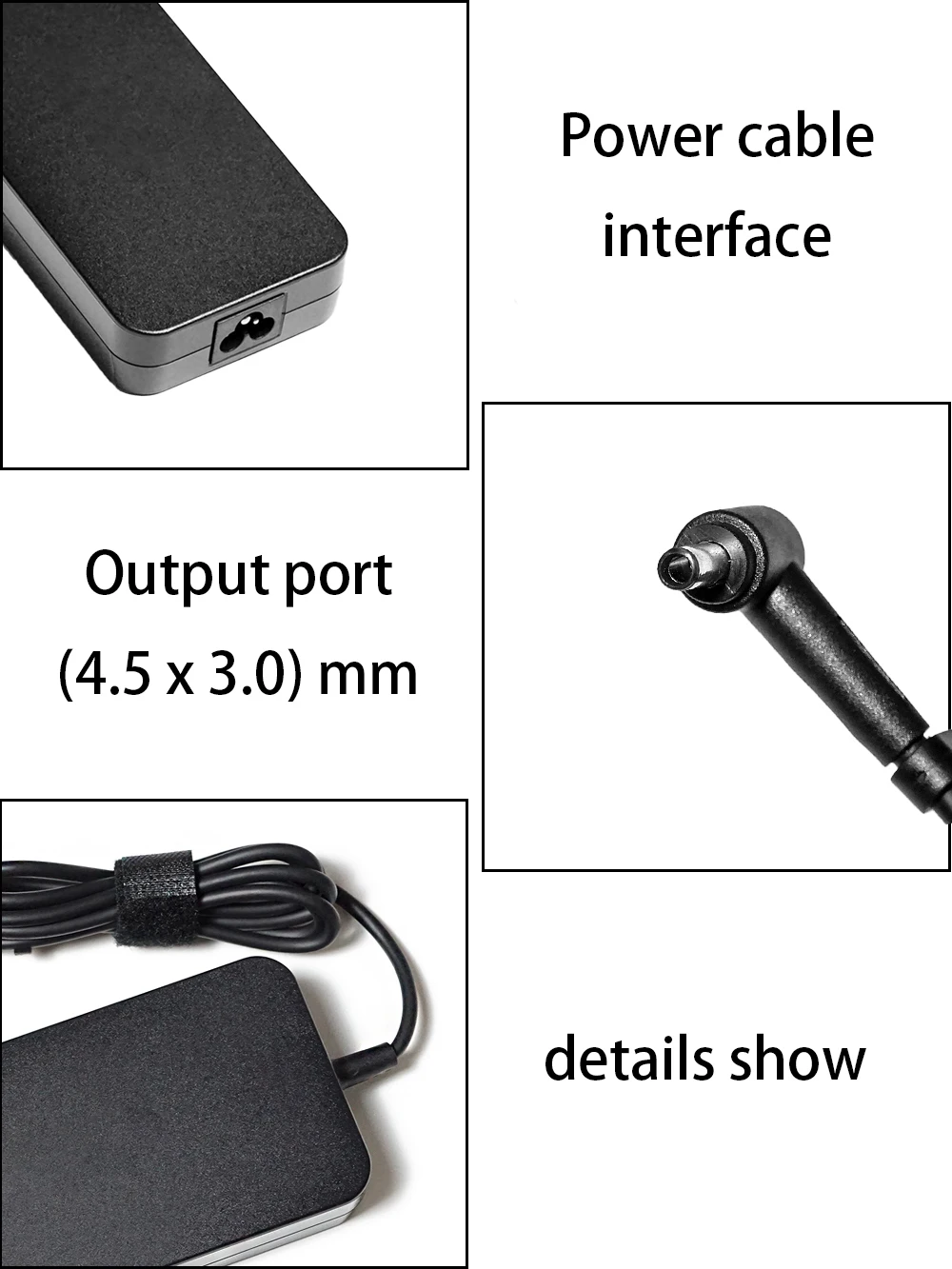 1.Artículo: Adaptador de CA2.QC:AAA+++3. Enchufe CC: 4,5 x 3,0 mm.4. Salida: 19 V⎓6.23A 120W5. Entrada: 100-240 V ~ 50-60 Hz 2,0 A.6.Aplicación: Reemplace su cargador de computadora portátil roto y dañado7.Prometido: 100% verificado antes del envío y embalaje seguro9.Cada artículo hará una marca en el producto.Modelo compatible:Para Asus Zenbook UX Pro UX501VW UX501JW UX501V UX501J