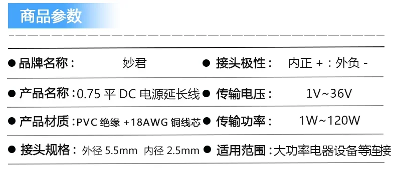 19V24V Power extension cord Projector display screen machine equipment DC5.5*2.5mm Extension line of the connecting wire