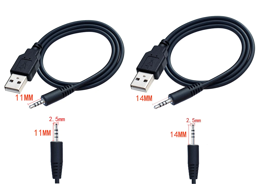 1m 2,5 mm 11 mm 14 mm tamaño 4 polos estéreo 2,5 mm macho a USB macho cable de carga de datos