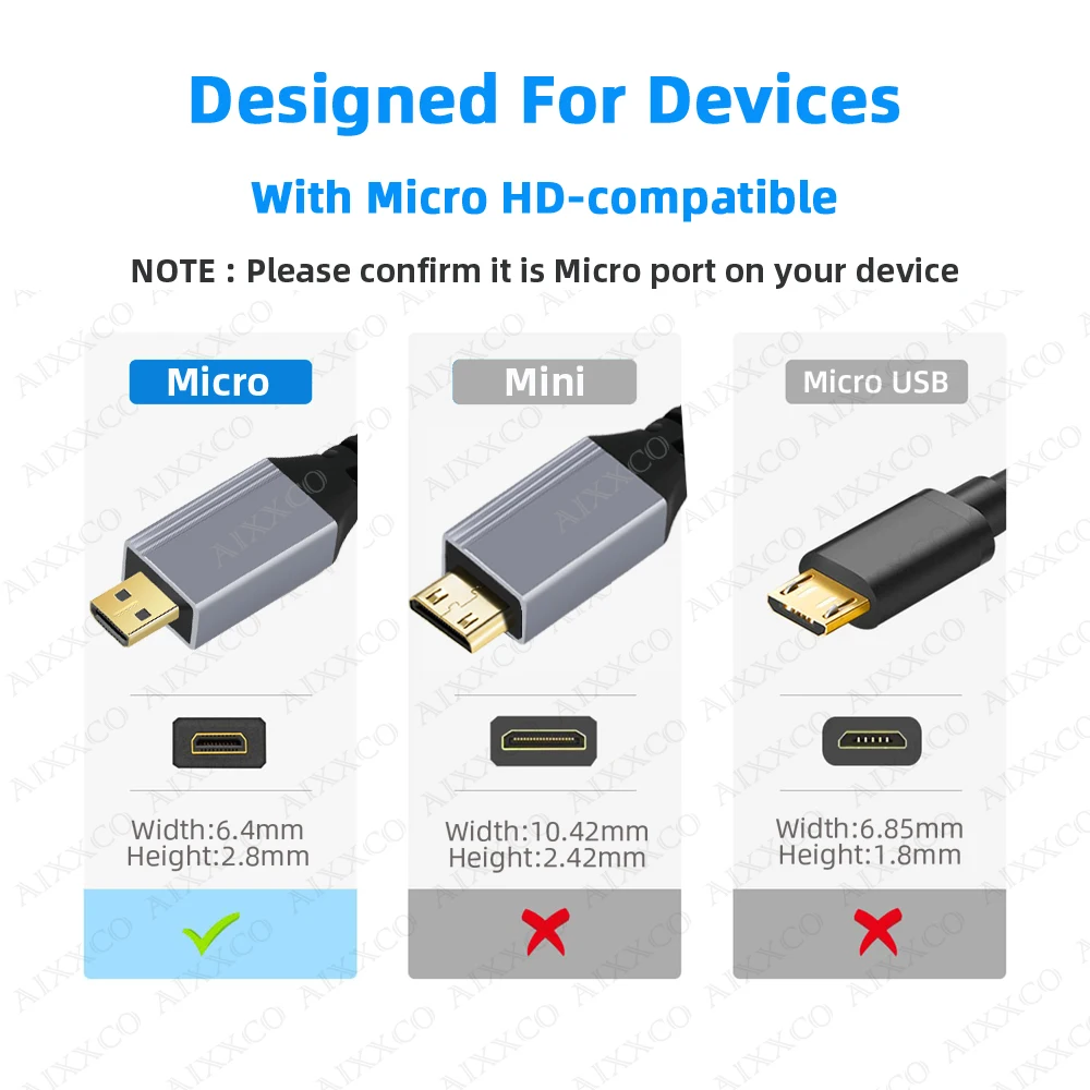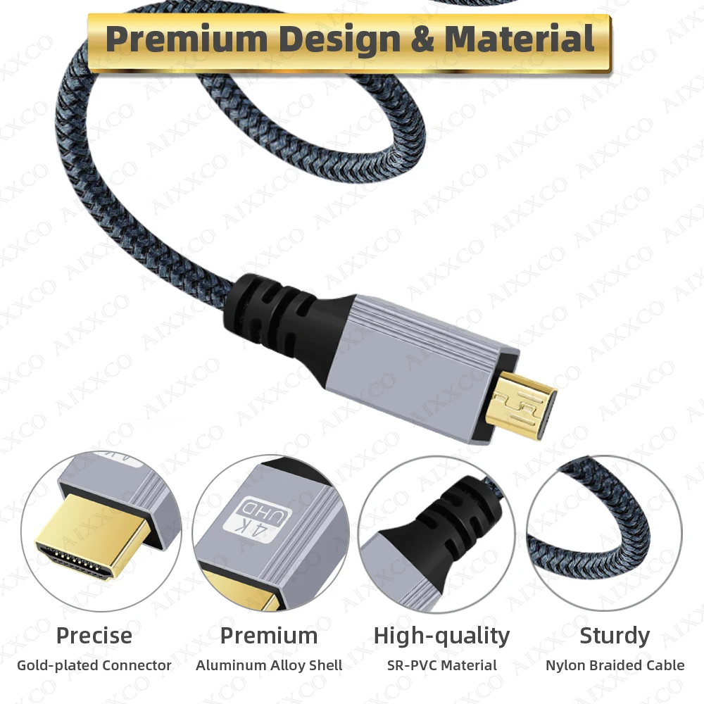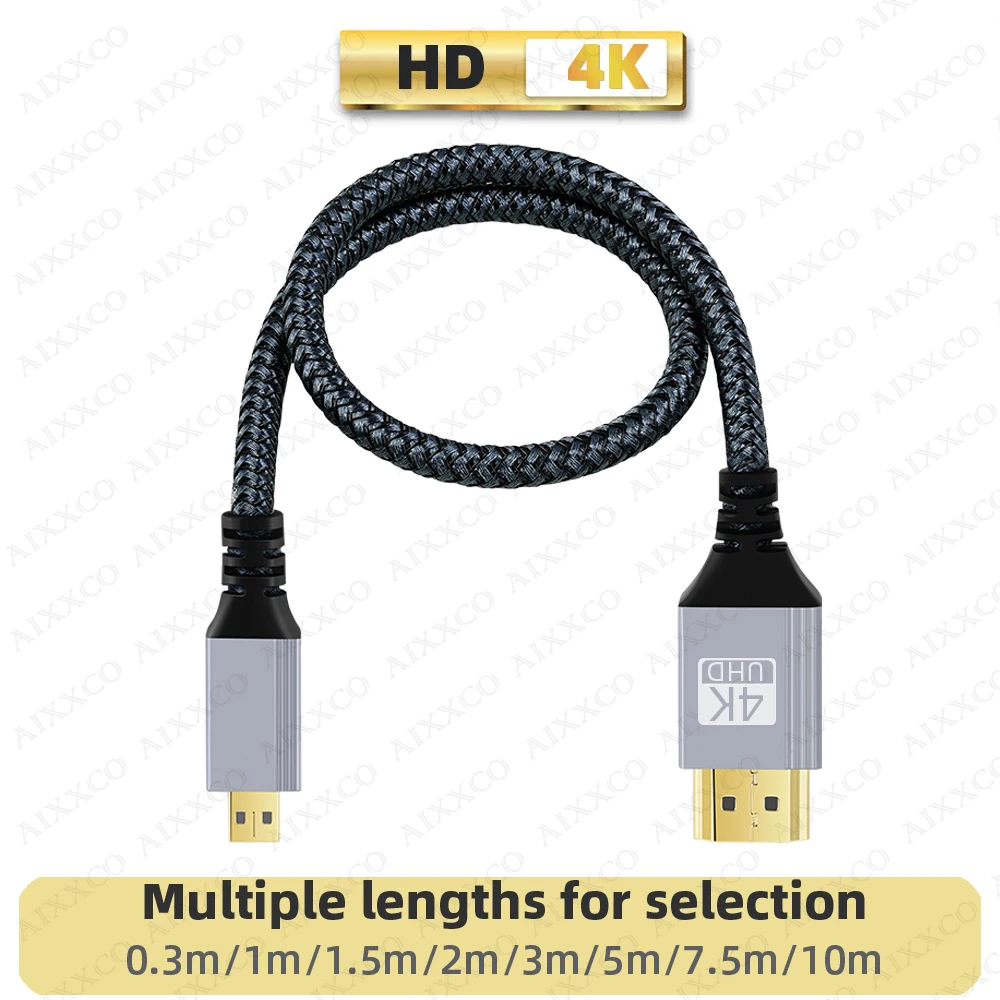 Comprar 1m 2m 3m 5m trenzado HD 4K @ 60HZ Micro HDMI Compatible con HDMI Cable de extensión macho a macho