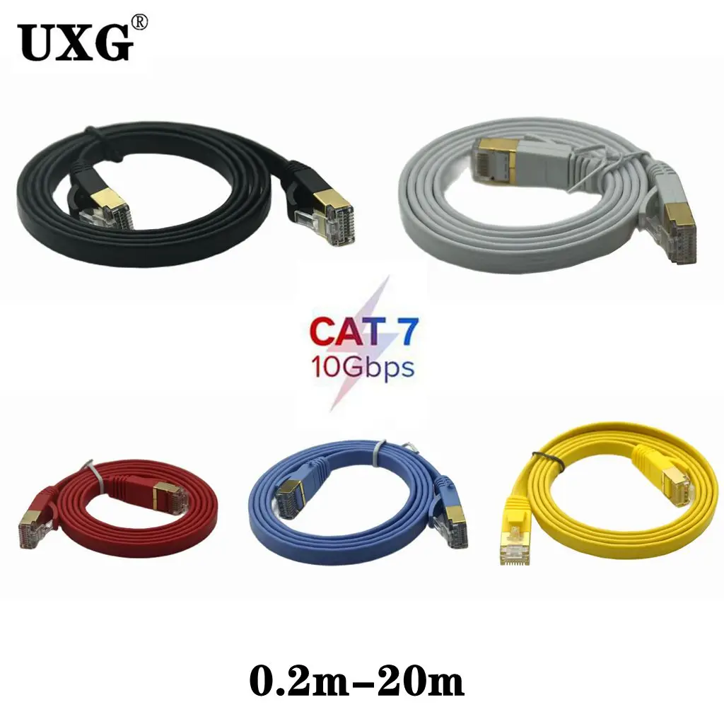 Comprar 1M-50M Cat7 RJ45 Ethernet parche plano enrutador de red PC portátil Cable DLS blindado (STP) con conector Rj45 sin enganches cinco colores