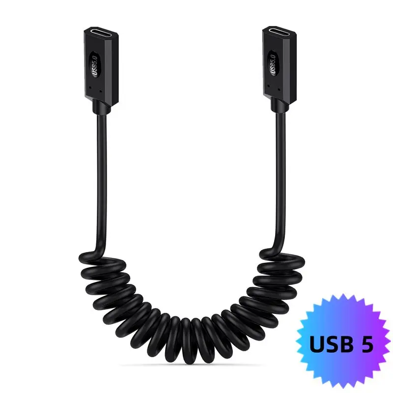 Cable de extensión USB 5 tipo C retráctil con resorte de 80 Gbps macho y hembra 16K60HZ relámpago multifuncional 240W 5A 40VZ relámpago multifuncional carga rápida 1 metro;