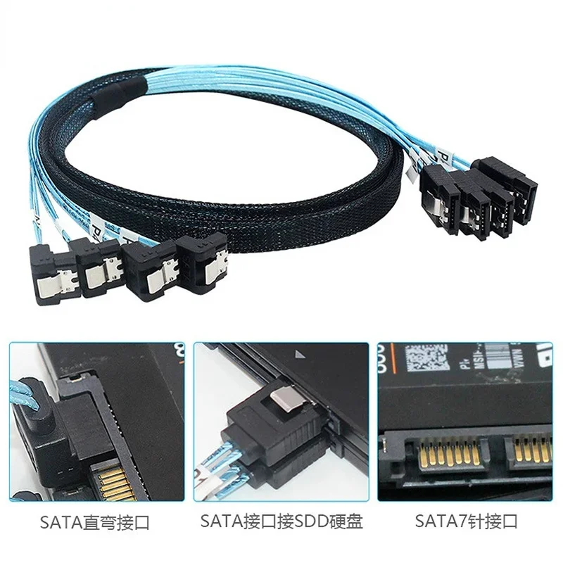 Comprar 1m Cable Sata a Sata 4 puertos/Set Cable de fecha 7 Pin Sata Sas Cable 6Gbps Sata a Sata HDD Cable para servidor minería azul
